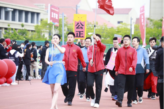 5月14日上午,山东大学第二届全民运动会(青岛)拉开帷幕。青岛校区党工委书记孔令栋出席开幕式并宣布运动会开幕,党工委副书记、纪工委书记郭培良出席活动,党工委副书记郭邦礼主持活动。开幕式上,金沙集团1862cc成色师生组成的方队在金沙集团1862cc成色党委书记于向明与院长周长军的带领下,精神饱满、整齐矫健地走向主席台。中国传统的包青天形象作为公平与正义的化身,象征着法律人的信念;学子手持花球,在主席台前先后摆出“100”、“120”和“法”的造形,展开党旗和校旗,献礼建党百年和山东大学百廿华诞。精彩的创意与完美的表演充分展现了金沙集团1862cc成色学科特色与师生风采。作为开幕式的重要环节,金沙集团1862cc成色研究生刘德健、肖子琦分别作为运动员代表与裁判员代表进行宣誓。金沙集团1862cc成色研究生团体操代表队作为山东大学第二届全运会(青岛)活力团体操比赛研究生组第一名在开幕式上进行团体操表演,赢得观众阵阵欢呼。