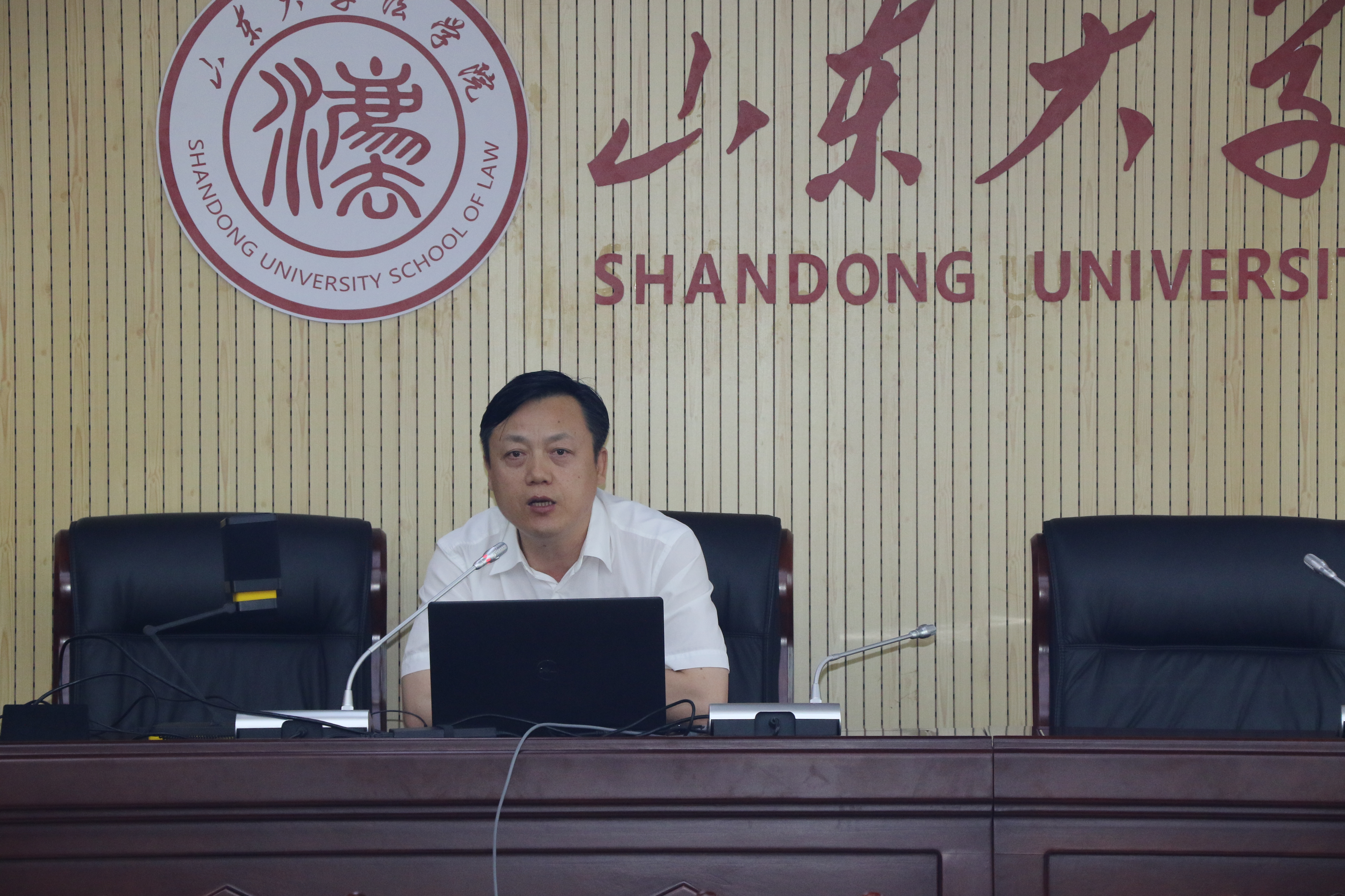 周长军院长从学科发展、人才培养、社会合作、文体活动等方面回顾了学院本学期的工作,重点强调了全日制法律硕士涉外法治人才班、学生学业发展与心理健康、社会合作等工作。对暑期中“交叉法学研究院”成立、“山东论坛”的筹办、校友总会成立及“120周年校庆”系列活动的开展做了部署。