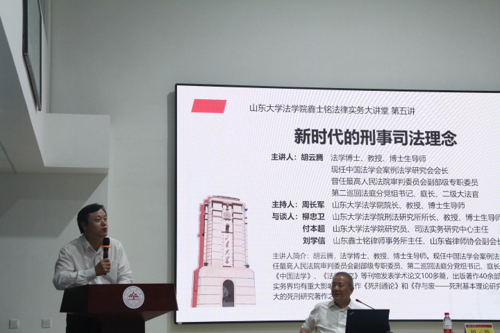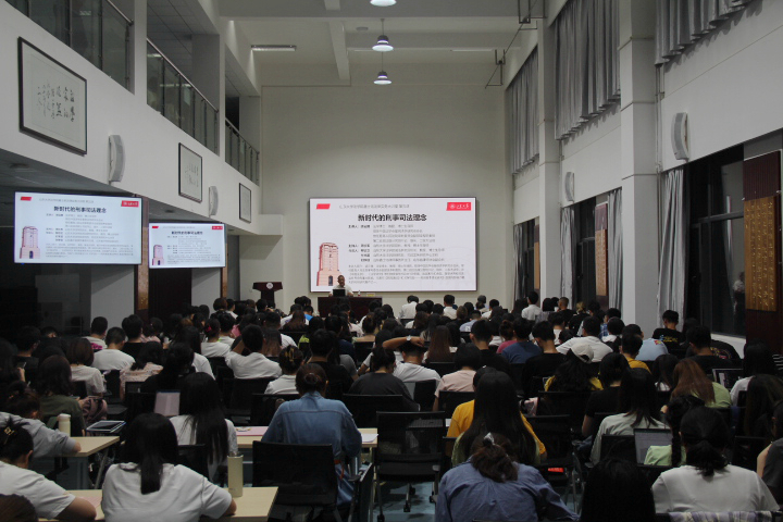 胡云腾教授首先强调了刑事司法在我国法治建设中的重要地位,指出以习近平同志为核心的党中央高度重视刑事法制建设和刑事法治改革。随后结合大量现实案例从四个方面阐释了新时代的刑事司法理念。其一,党领导司法的理念。坚持党对司法工作的全面领导和绝对领导,旗帜鲜明,毫不动摇。其二,以人民为中心的理念。坚持人民的立场,关注人民群众的反应与需求,考虑人民群众的感受,强调人民群众对司法的监督。其三,公正司法的理念。公正是法治的生命线。贯彻落实新时代司法公正的新标准,即事实认定符合客观真相,办案过程符合程序公正,办案结果符合实体公正;重视个案的公正处理。其四,宽严相济的理念。根据刑事案件的具体情况,做到该宽则宽、当严则严、宽严相济、罚当其罪。最后,胡云腾教授提出了“三读”学习法——读书、读法、读案,希望法科学生不断丰富和完善自己的知识结构。