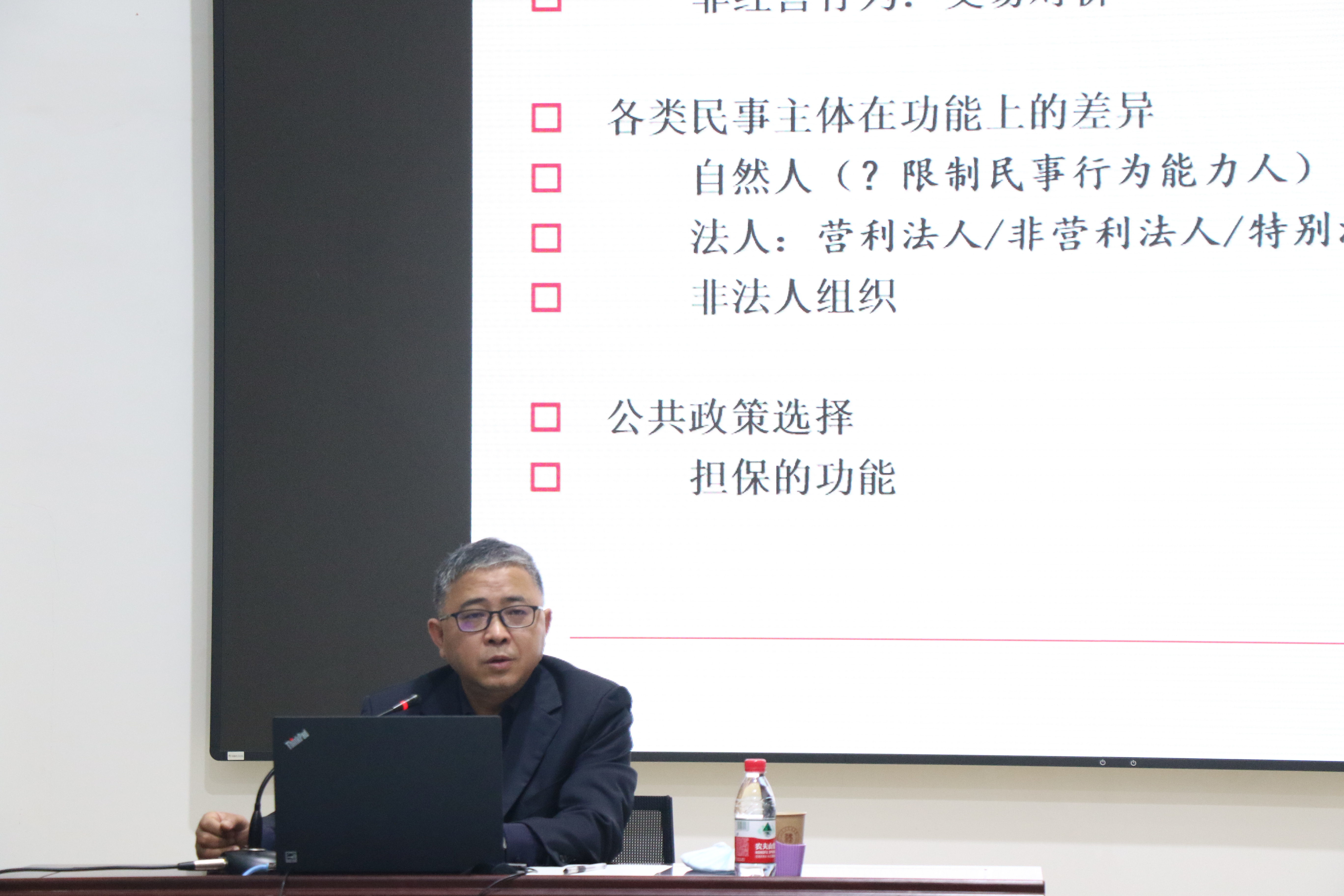 高圣平教授以问题为导向,从四个方面展开论述。首先,民法典担保制度体系不够完善,法条之间存在冲突,缺乏担保的一般规定。高圣平教授以取回请求权与担保价值之间的冲突为例,阐述了功能主义担保物权观念在实践中遇到的问题。其次,在担保人的资格限制方面,高圣平教授以《民法典》第五百零四条、《公司法》第十六条、《民法典担保制度司法解释》第七条为线索,对法定代表人越权担保的效果归属、善意判断标准以及合理审查范围进行了剖析。随后,高圣平教授就民法典担保从属性规则的解释与适用进行了讨论,并对反担保合同的从属对象、排除独立性约定的效力等问题展开思考。最后,高圣平教授概括表达了自己对民法典上共同担保规则体系的评价与反思。