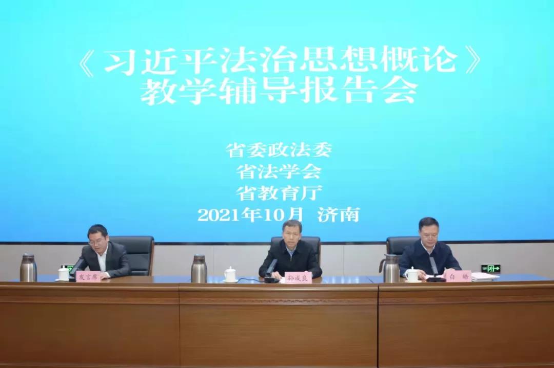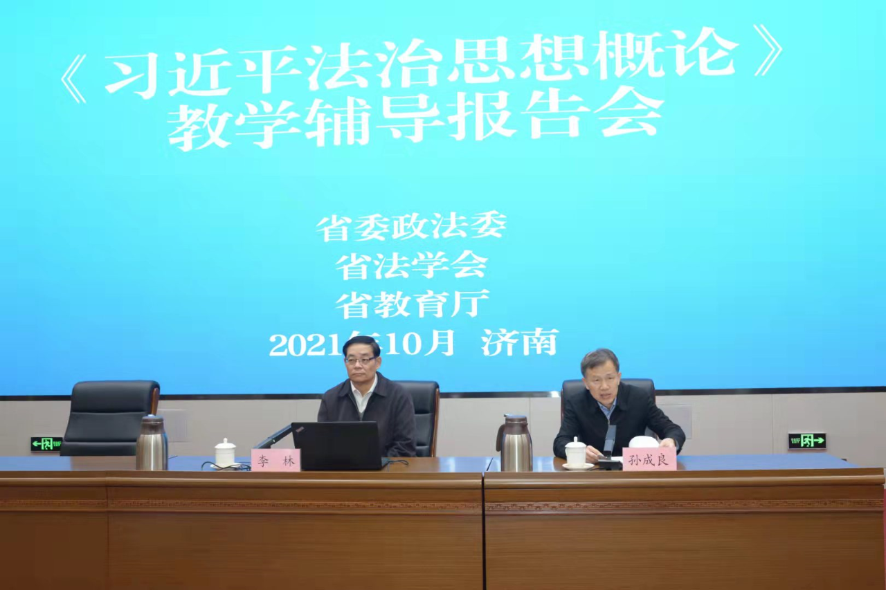 10月31日上午,山东省委政法委、省法学会、省教育厅《习近平法治思想概论》教学辅导报告会在济南举行。省委政法委分管日常工作的副书记,省法学会党组书记、常务副会长孙成良同志主持会议并讲话,省委教育工委副书记,省教育厅党组副书记、副厅长白皓同志出席会议并讲话。《习近平法治思想概论》教材编写课题组首席专家、中国法学会学术委员会副主任,中国社会科学院学部委员李林研究员作了精彩的辅导报告。我院副院长郑智航教授代表山东大学作了交流发言。校区纪工委书记郭培良带领金沙集团1862cc成色教师代表在青岛市教育局分会场参加了会议。