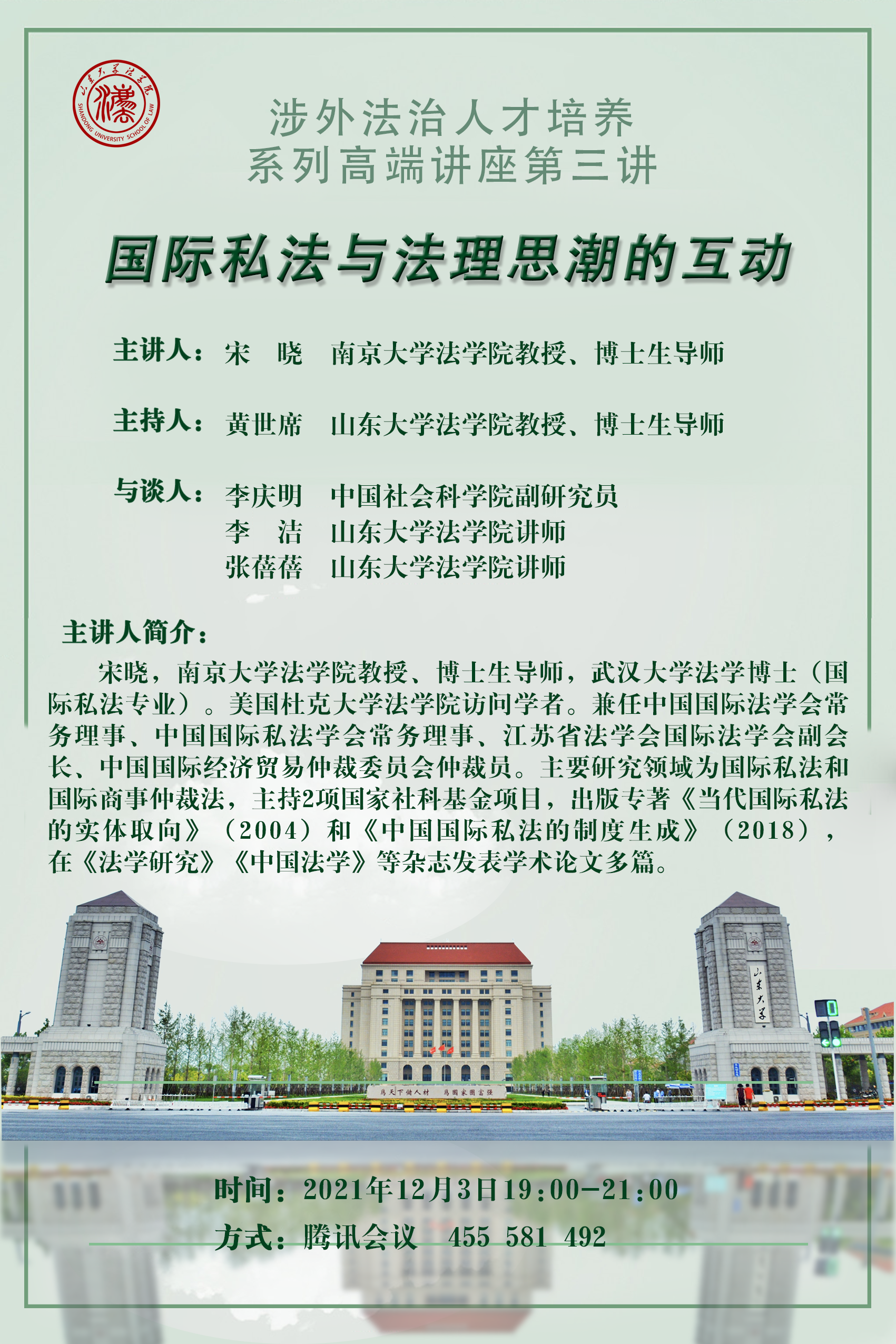 涉外法治人才培养系列高端讲座第三讲:国际私法与法理思潮的互动