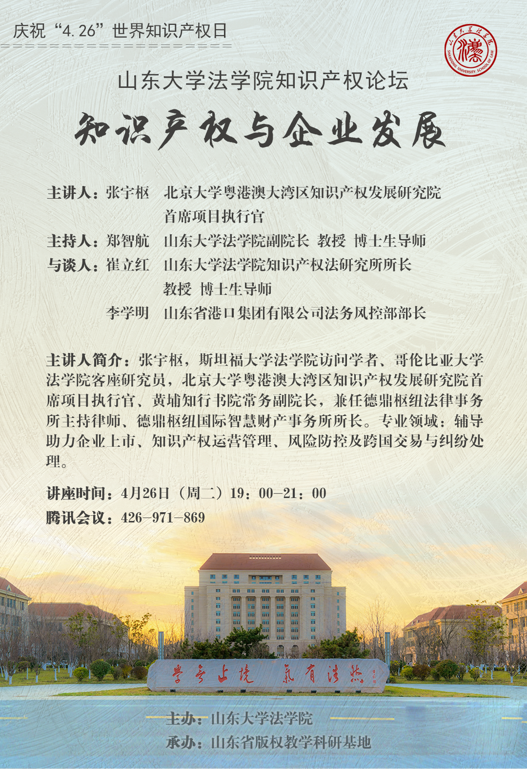 讲座预告 | 金沙集团1862cc成色知识产权论坛:知识产权与企业发展