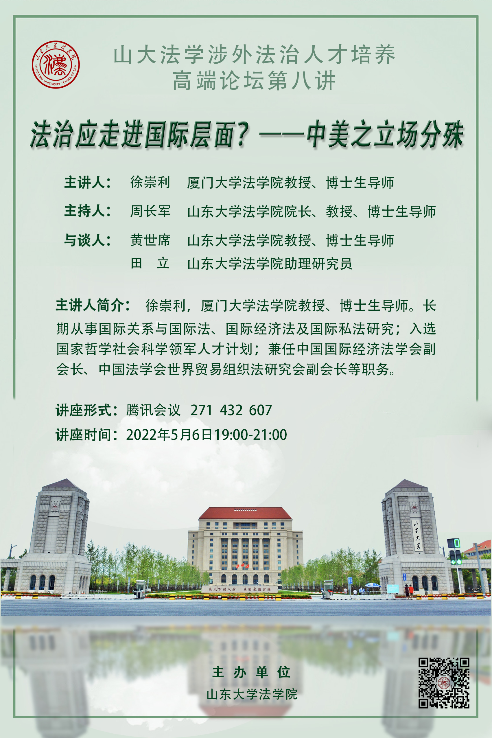 山大法学涉外法治人才培养高端论坛第八讲:法治应走进国际层面?--中美之立场分殊