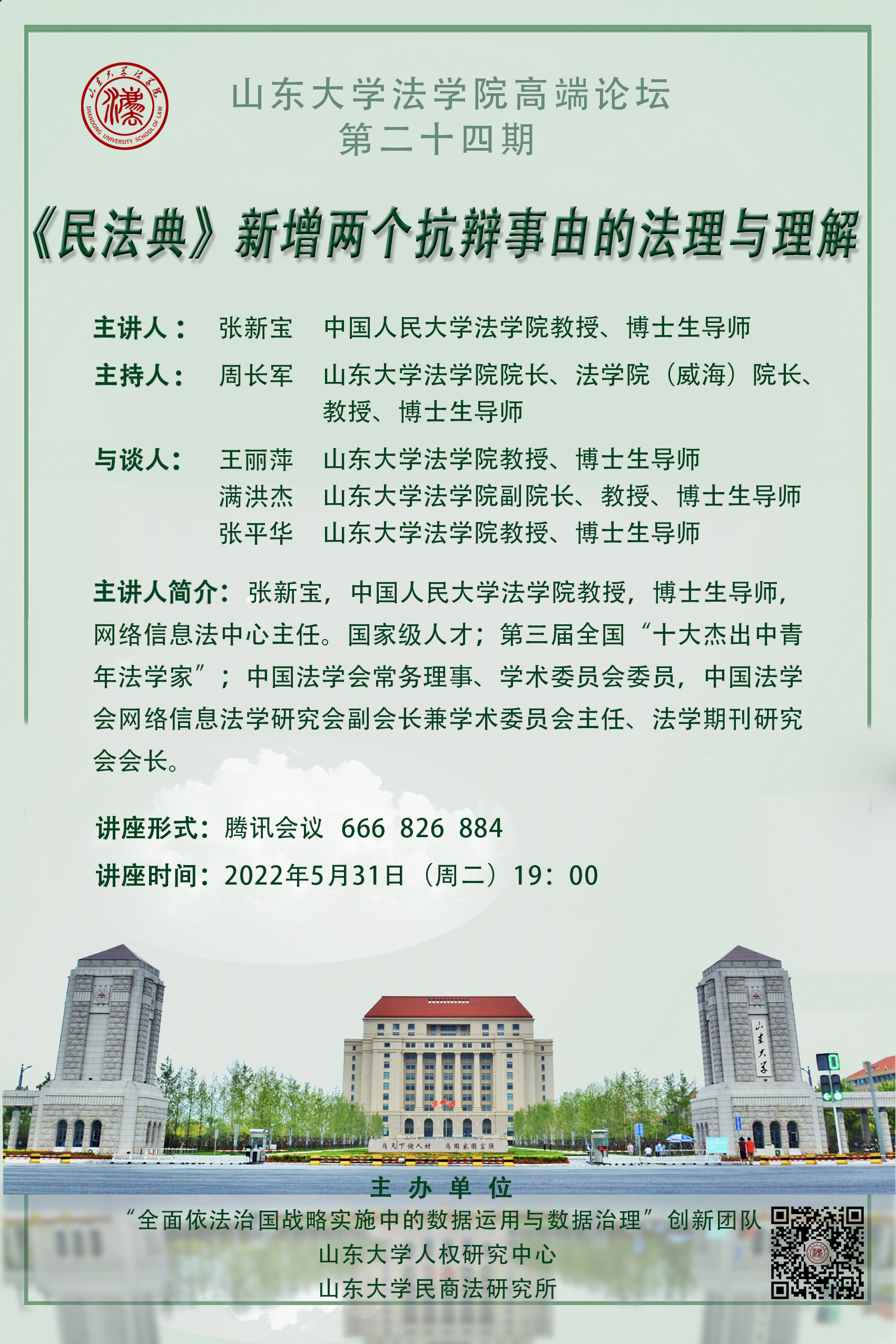 金沙集团1862cc成色高端论坛第二十四期:《民法典》新增两个抗辩事由的法理与理解