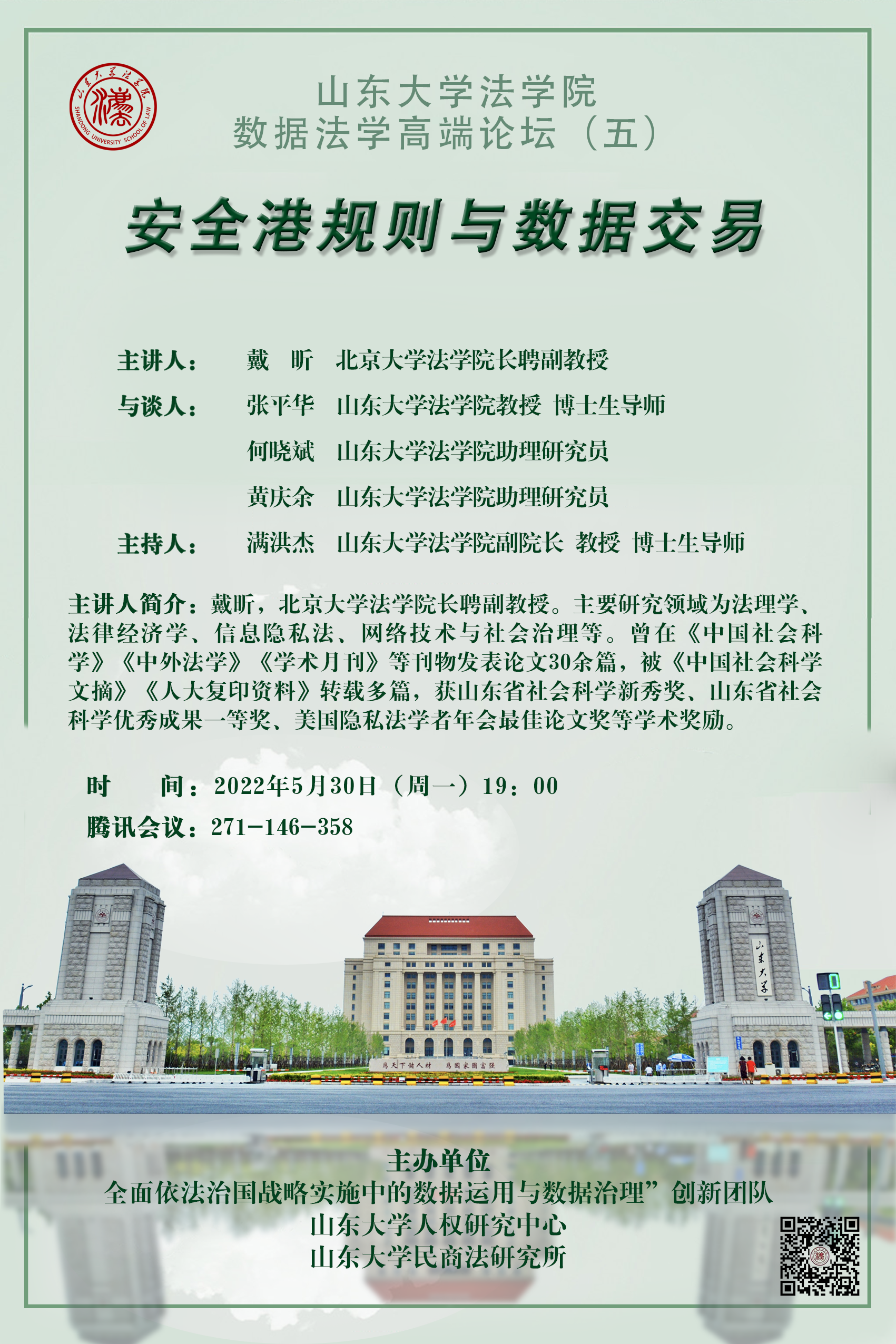 金沙集团1862cc成色数据法学高端论坛(五):安全港规则与数据交易