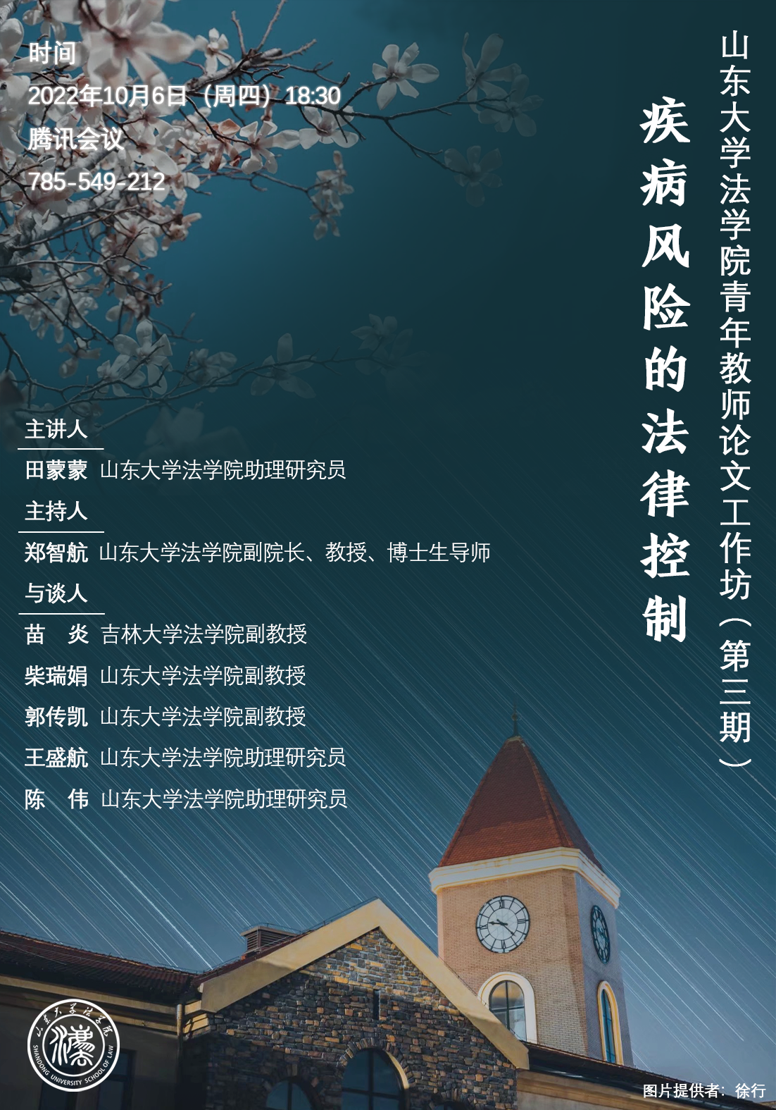 讲座预告 | 金沙集团1862cc成色青年教师论文工作坊第三期:疾病风险的法律控制