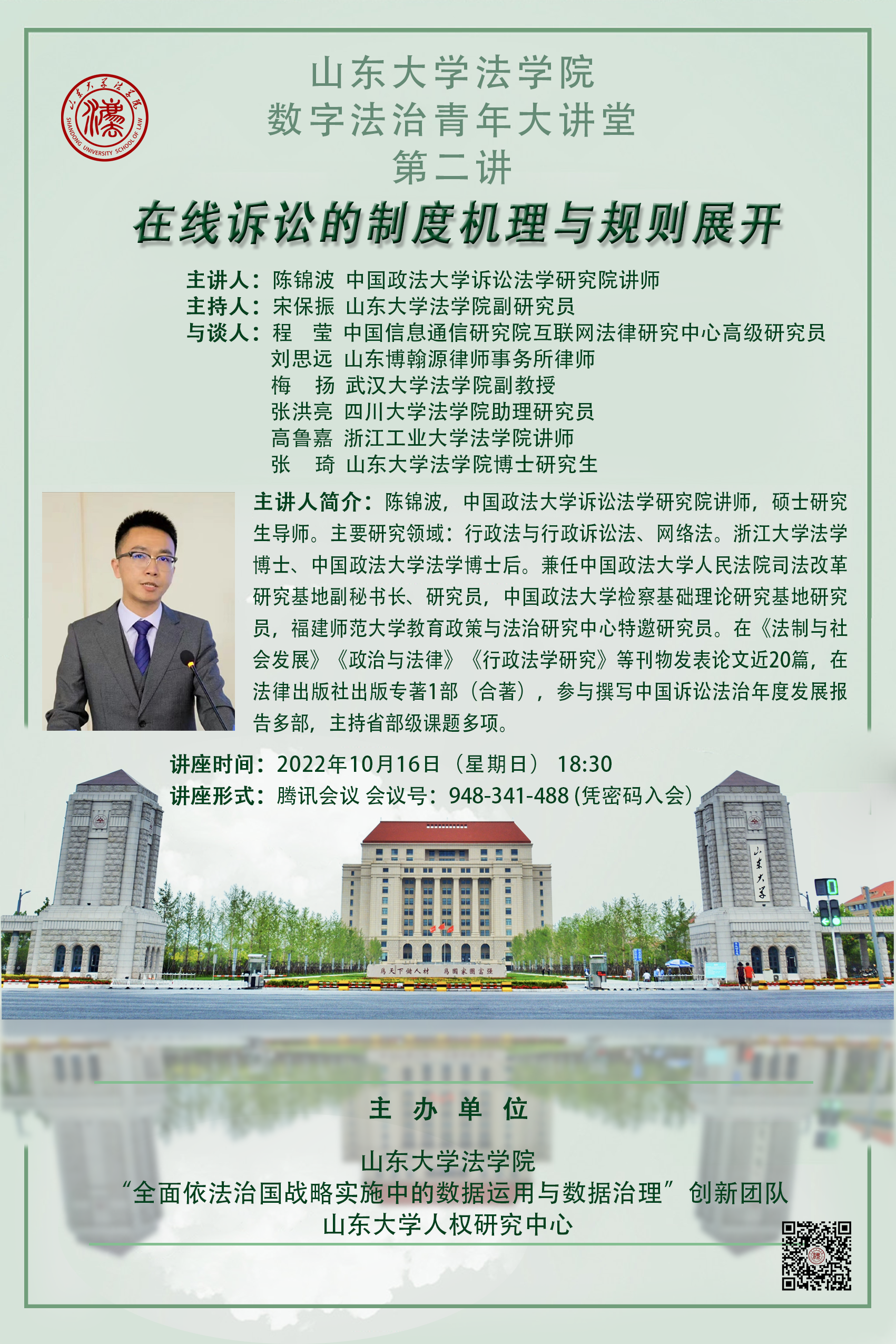 讲座预告 | 金沙集团1862cc成色数字法治青年大讲堂第二讲:在线诉讼的制度机理与规则展开