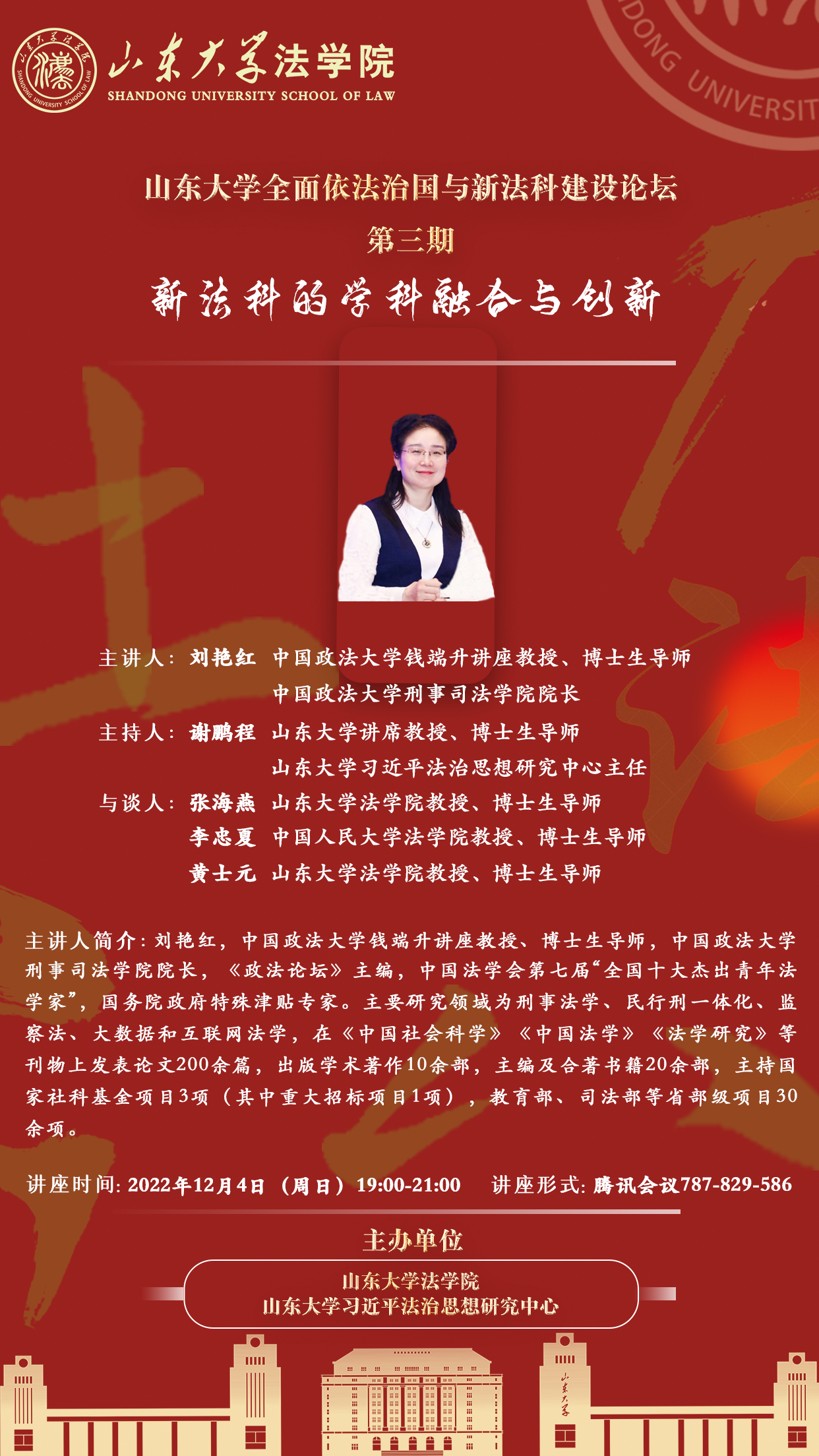 讲座预告 | 山东大学全面依法治国与新法科建设论坛第三期:新法科的学科融合与创新