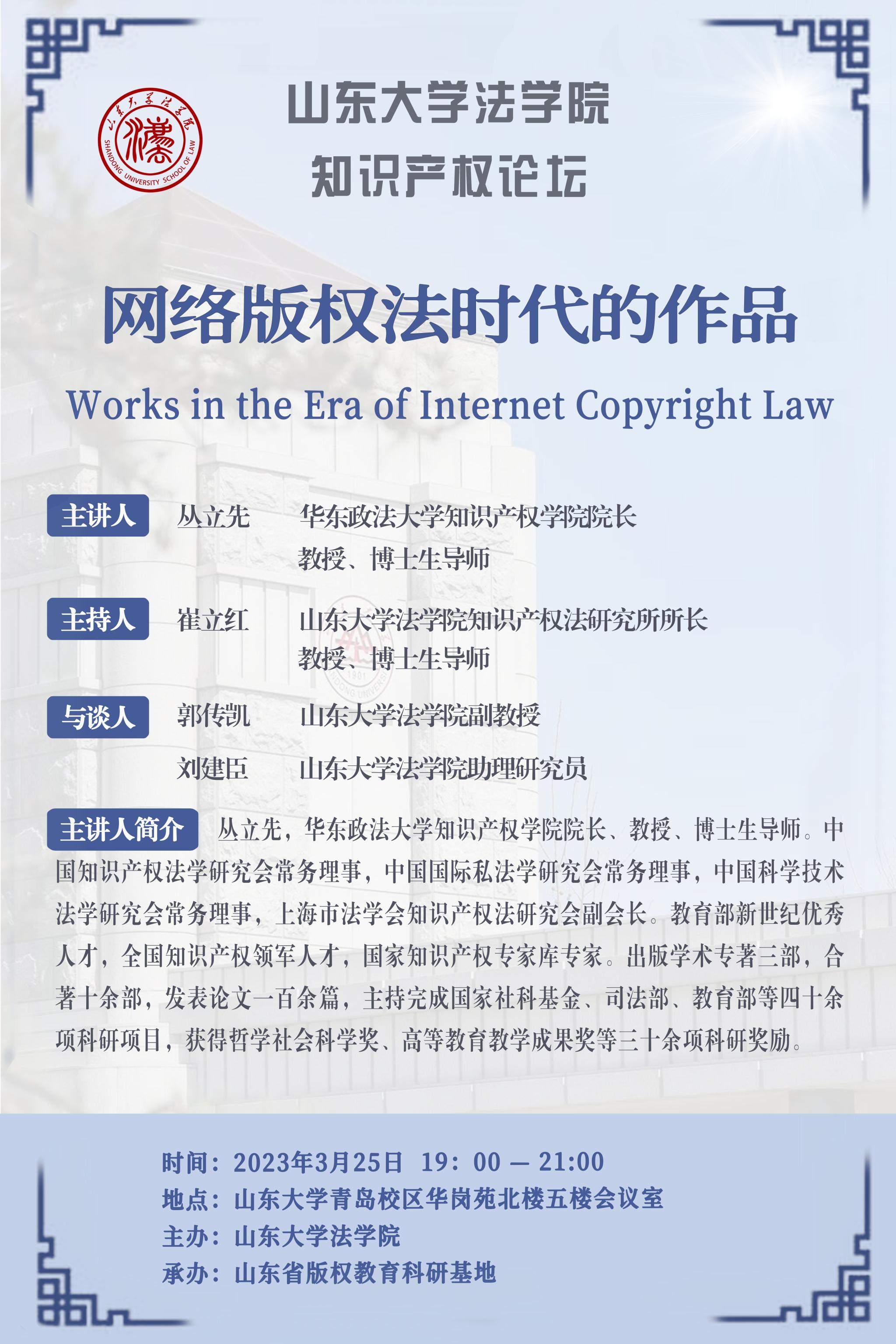 讲座预告 | 金沙集团1862cc成色知识产权论坛:网络版权法时代的作品