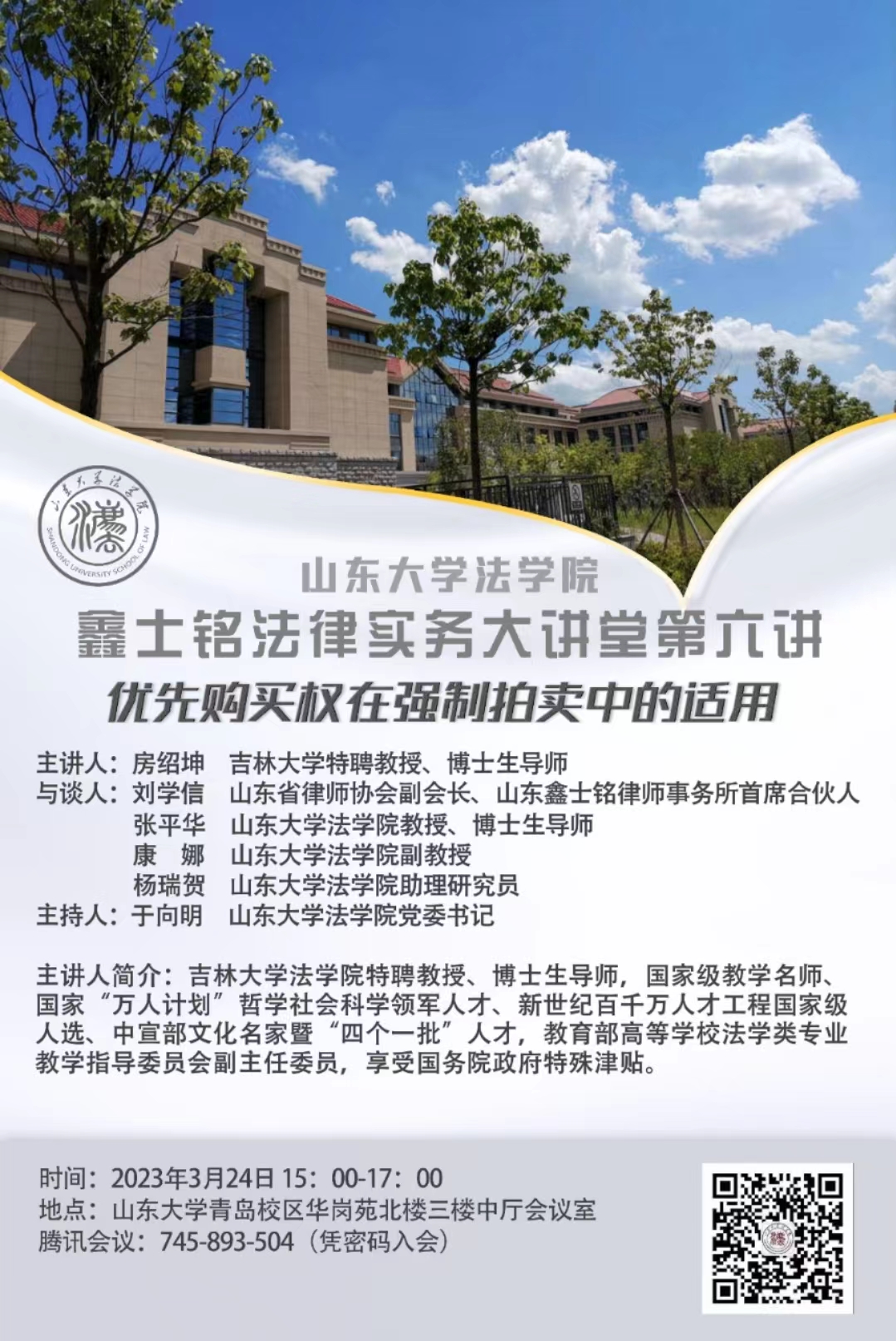 讲座预告 | 金沙集团1862cc成色鑫士铭法律实务大讲堂第六讲:优先购买权在强制拍卖中的适用