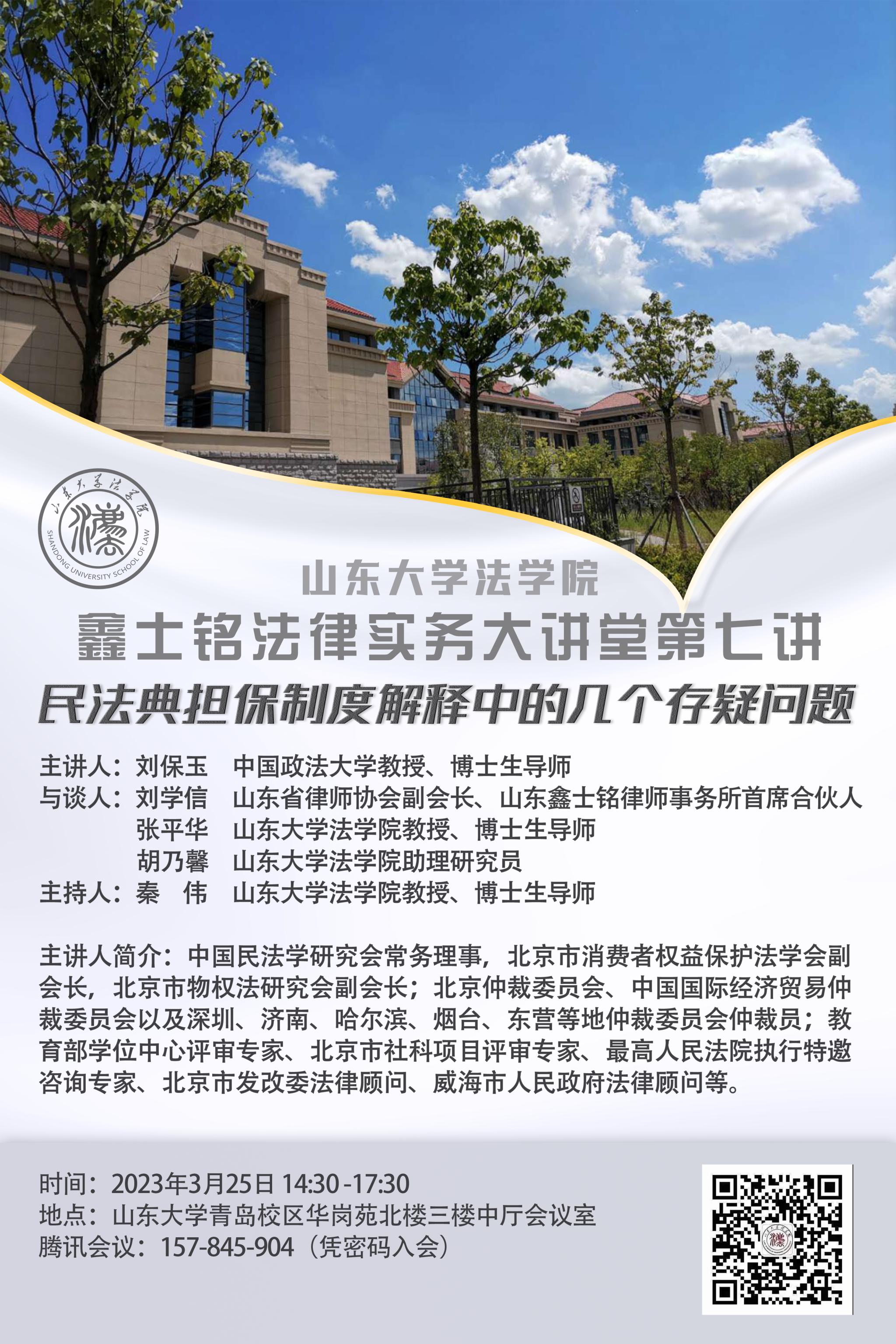 讲座预告 | 金沙集团1862cc成色鑫士铭法律实务大讲堂第七讲:民法典担保制度解释中的几个存疑问题