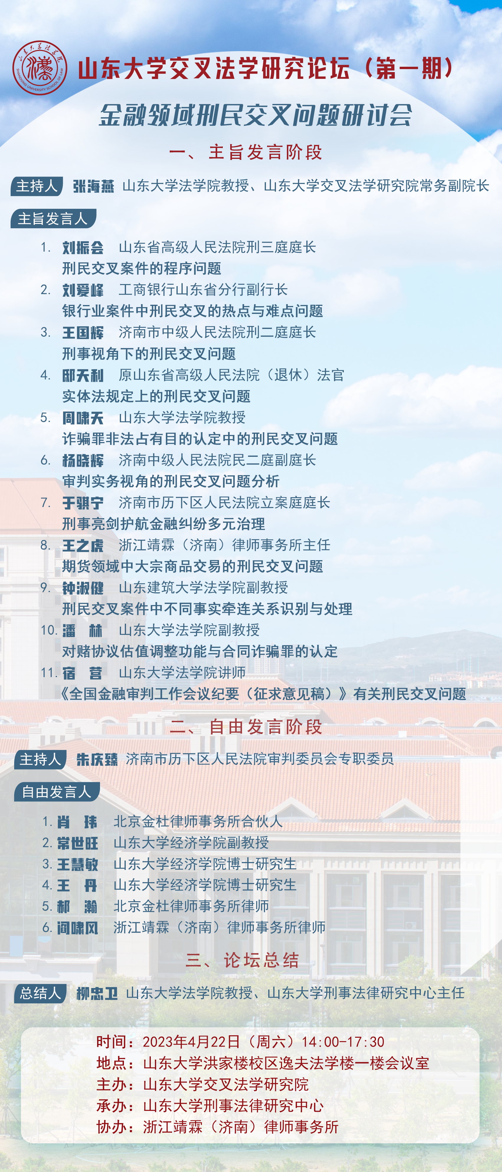 会议议程 | 山东大学交叉法学研究论坛 (第一期):金融领域刑民交叉问题研讨会