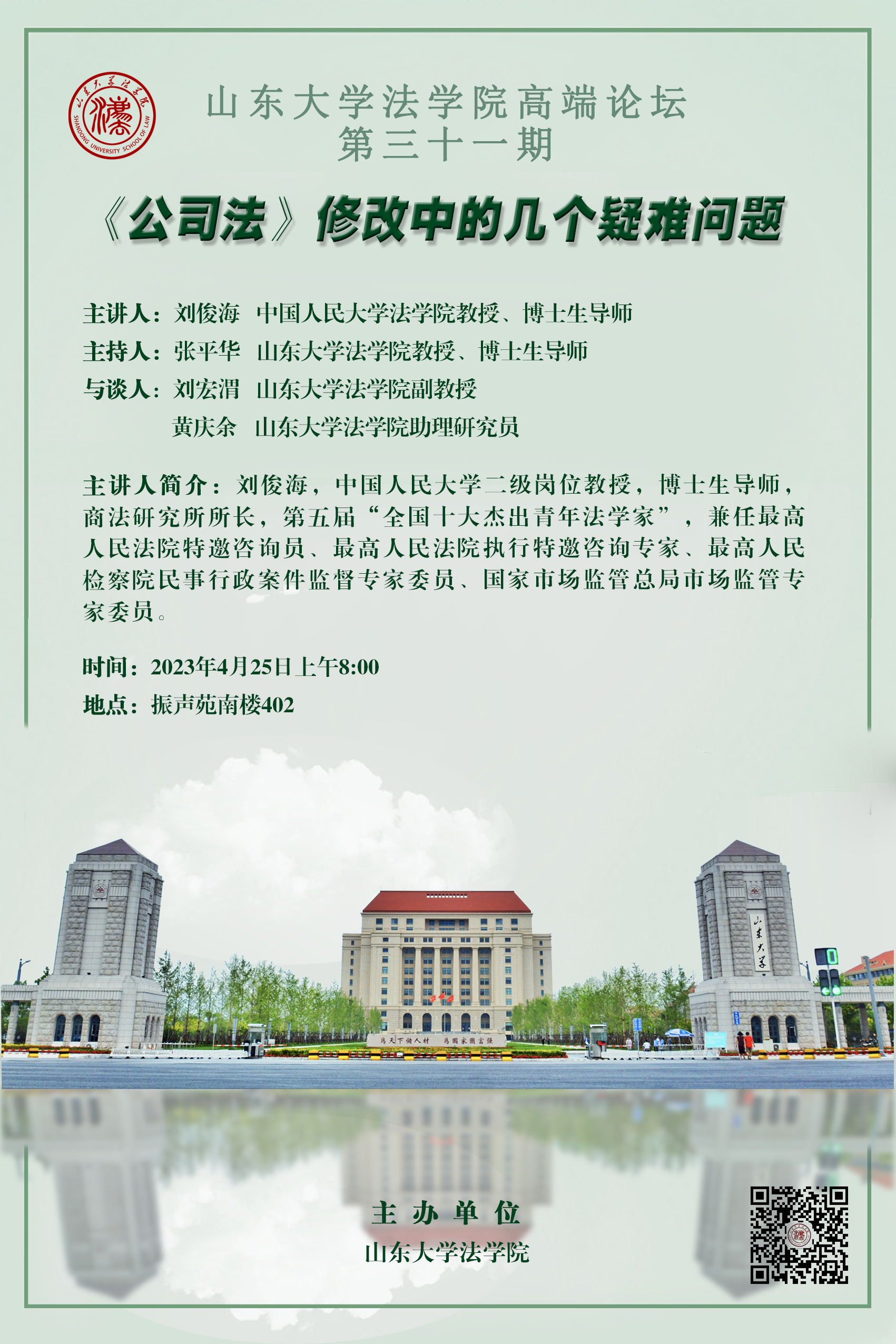 讲座预告 | 金沙集团1862cc成色高端论坛第三十一期:《公司法》修改中的几个疑难问题