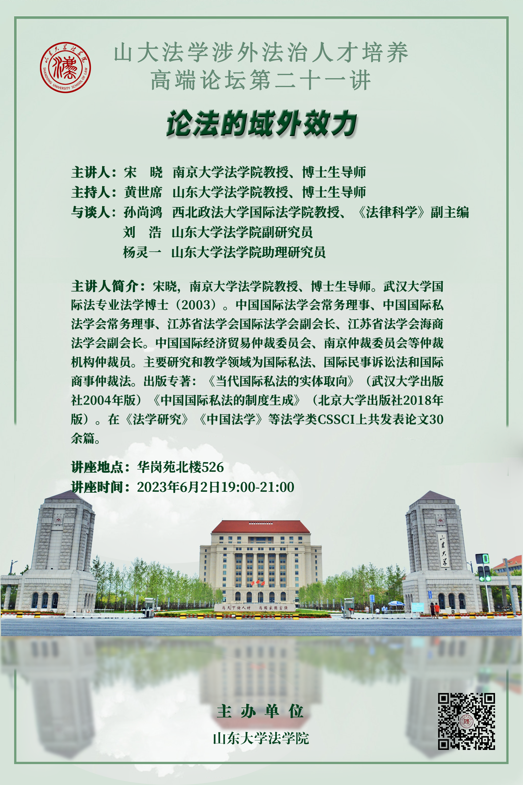 讲座预告 | 山大法学涉外法治人才培养高端论坛第二十一讲:论法的域外效力