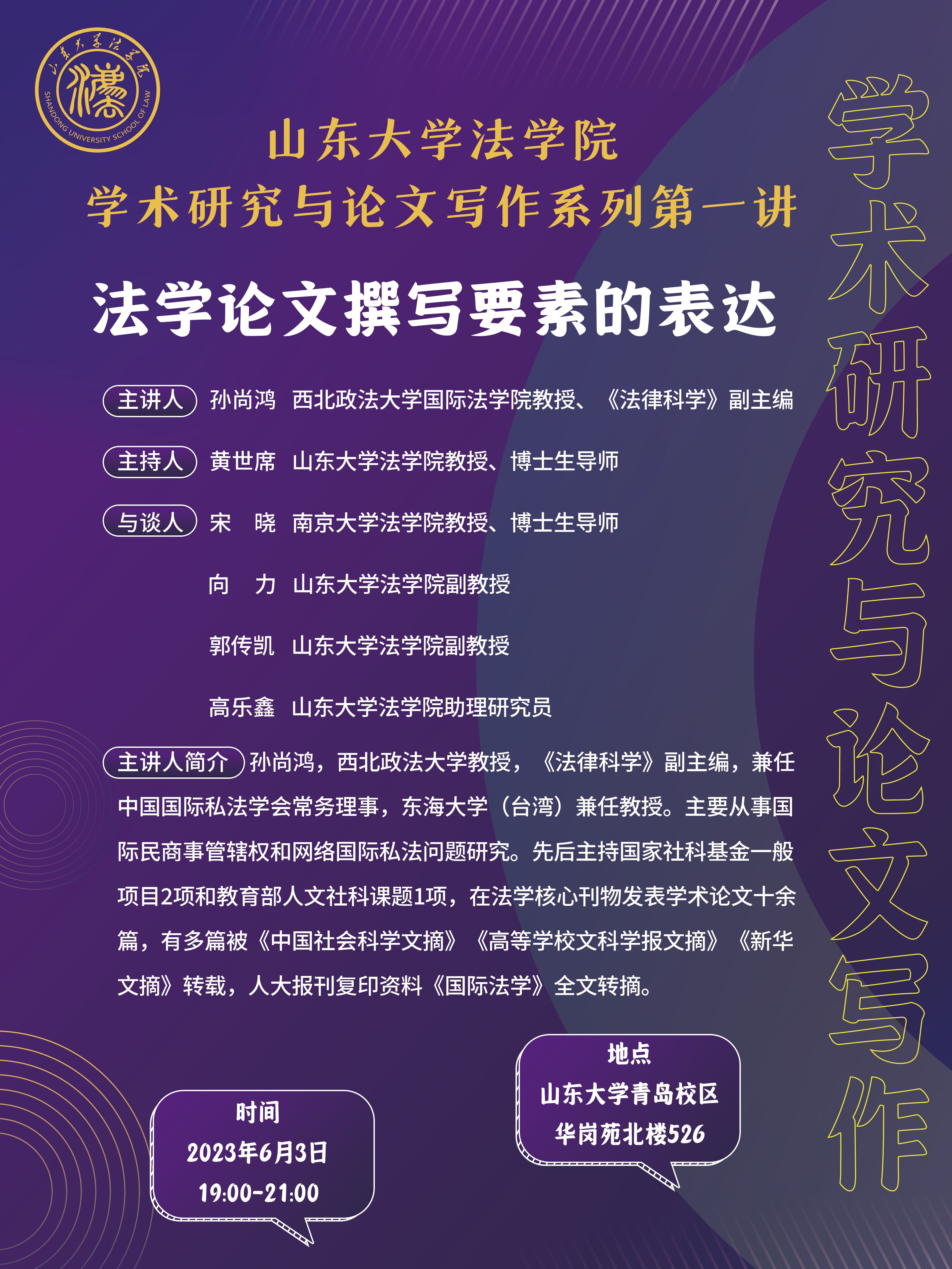 讲座预告 | 金沙集团1862cc成色学术研究与论文写作系列第一讲:法学论文撰写要素的表达