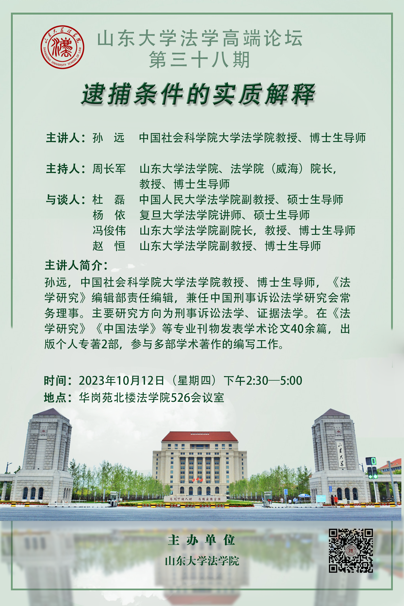 讲座预告 | 山东大学法学高端论坛第三十八期:逮捕条件的实质解释
