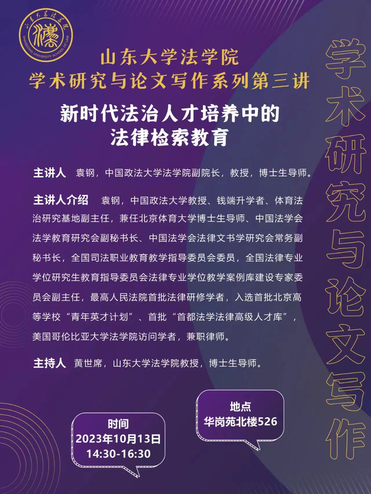 讲座预告 | 金沙集团1862cc成色学术研究与论文写作系列第三讲:新时代法治人才培养中的法律检索教育