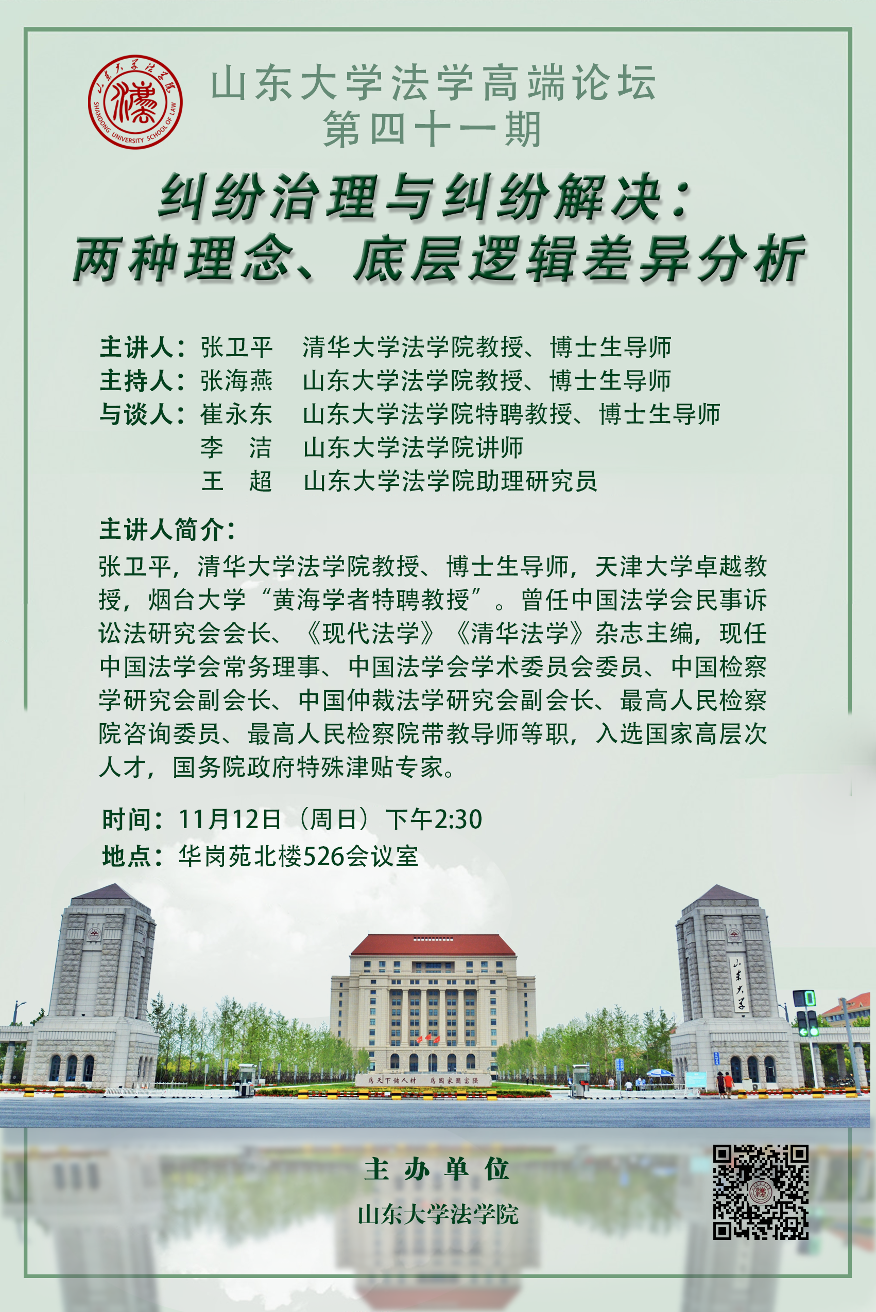 讲座预告 | 山东大学法学高端论坛第四十一期——纠纷治理与纠纷解决:两种理念、底层逻辑差异分析