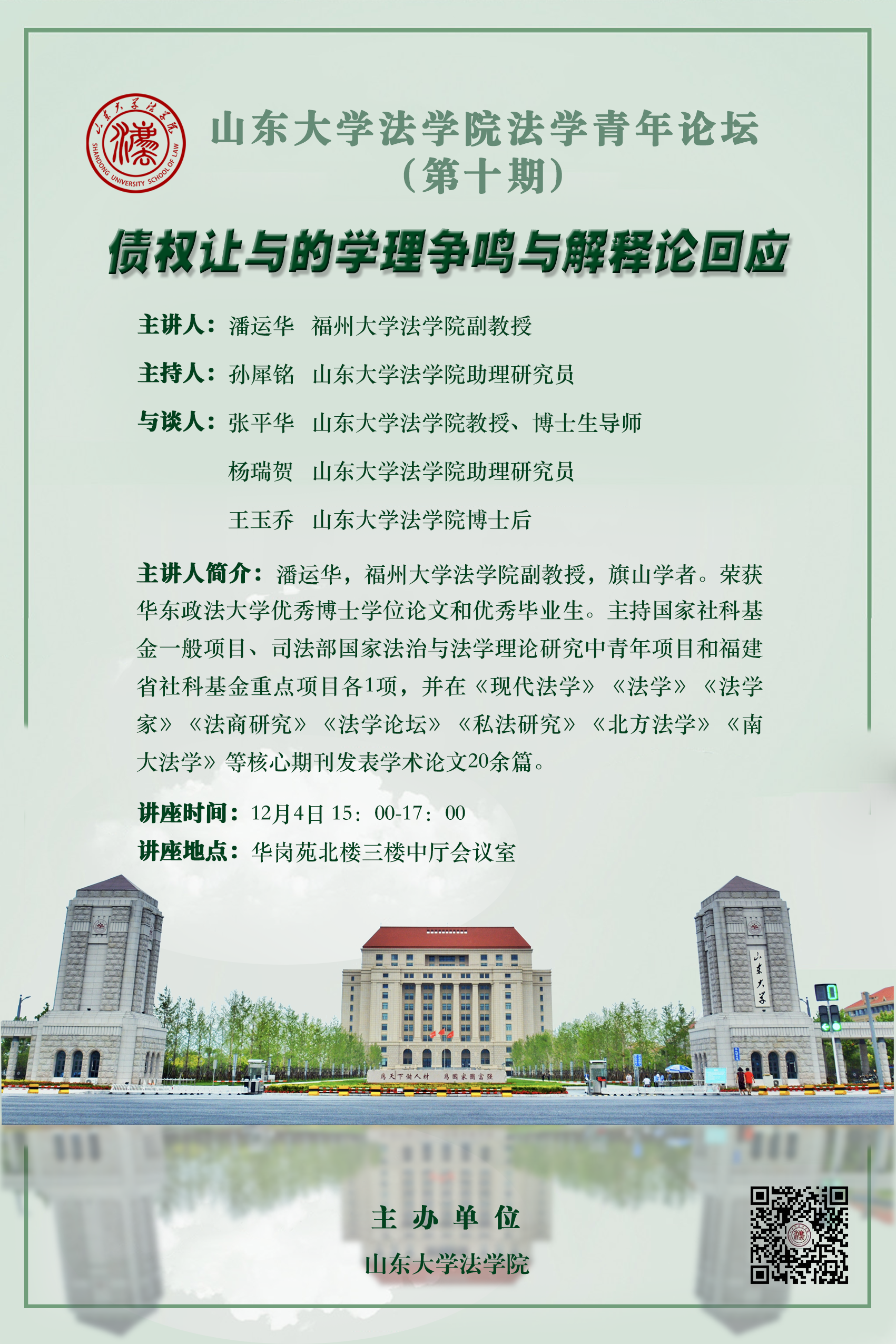 讲座预告 | 金沙集团1862cc成色法学青年论坛(第十期):债权让与的学理争鸣与解释论回应