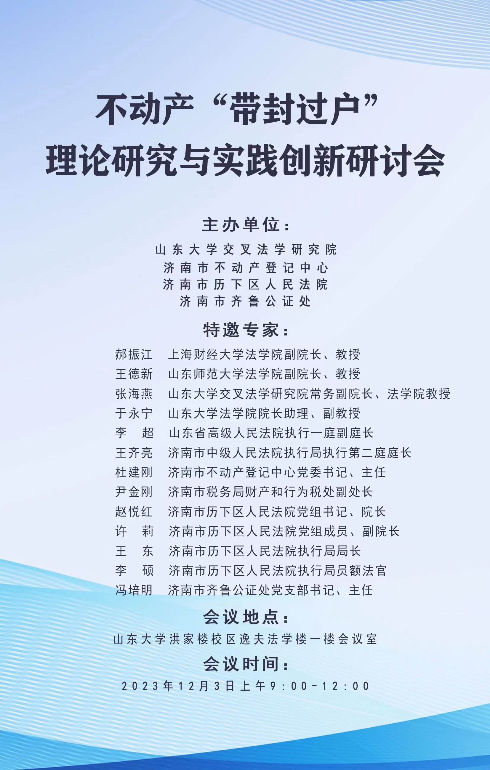 会议议程 | 不动产“带封过户”理论研究与实践创新研讨会