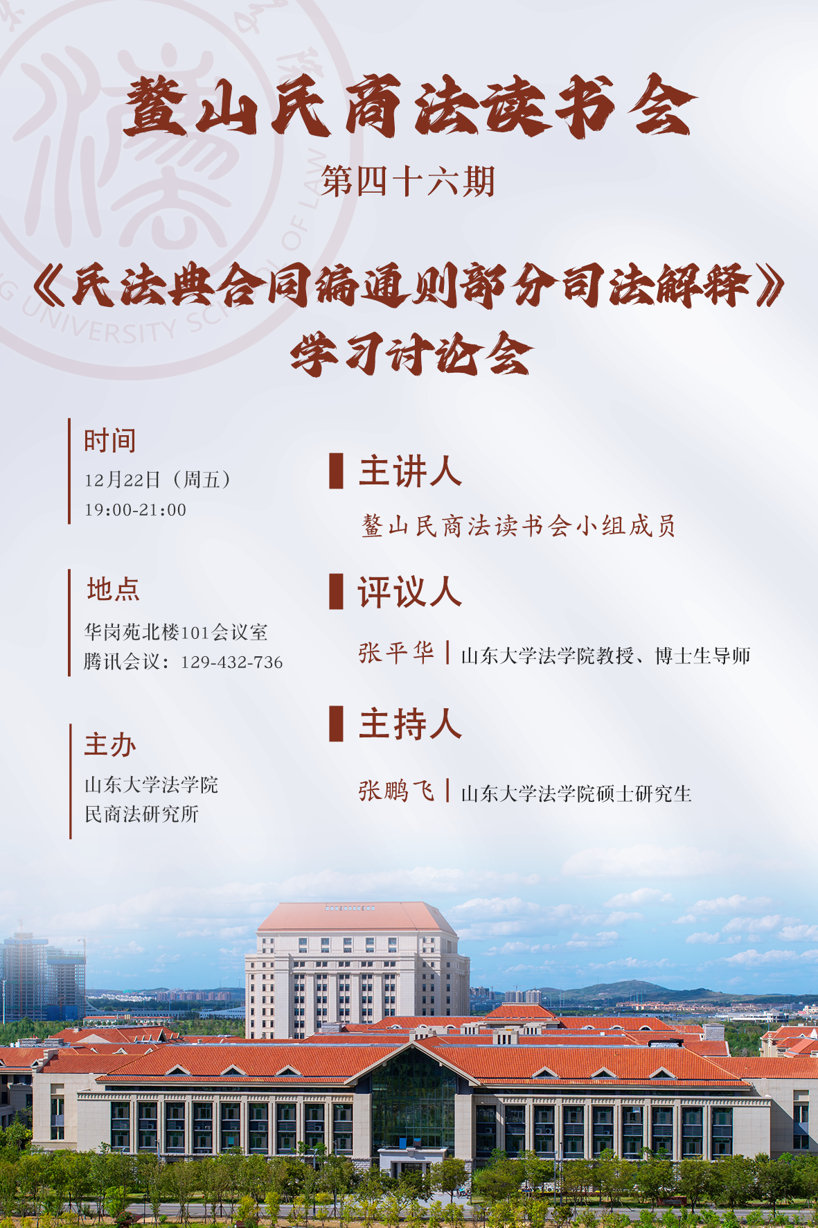 读书会预告 | 鳌山民商法读书会第四十六期:《民法典合同编通则部分司法解释》学习讨论会