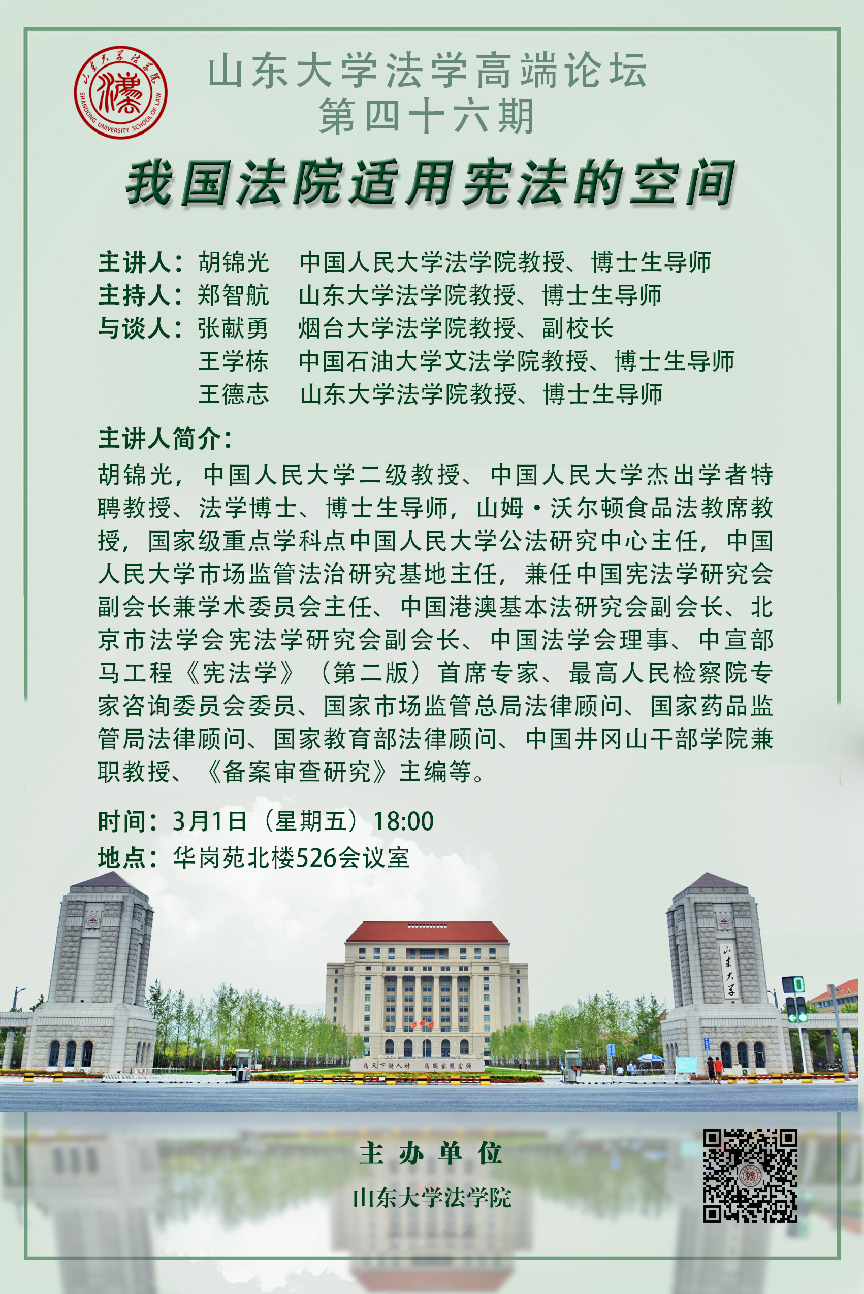 讲座预告 | 山东大学法学高端论坛第四十六期:我国法院适用宪法的空间