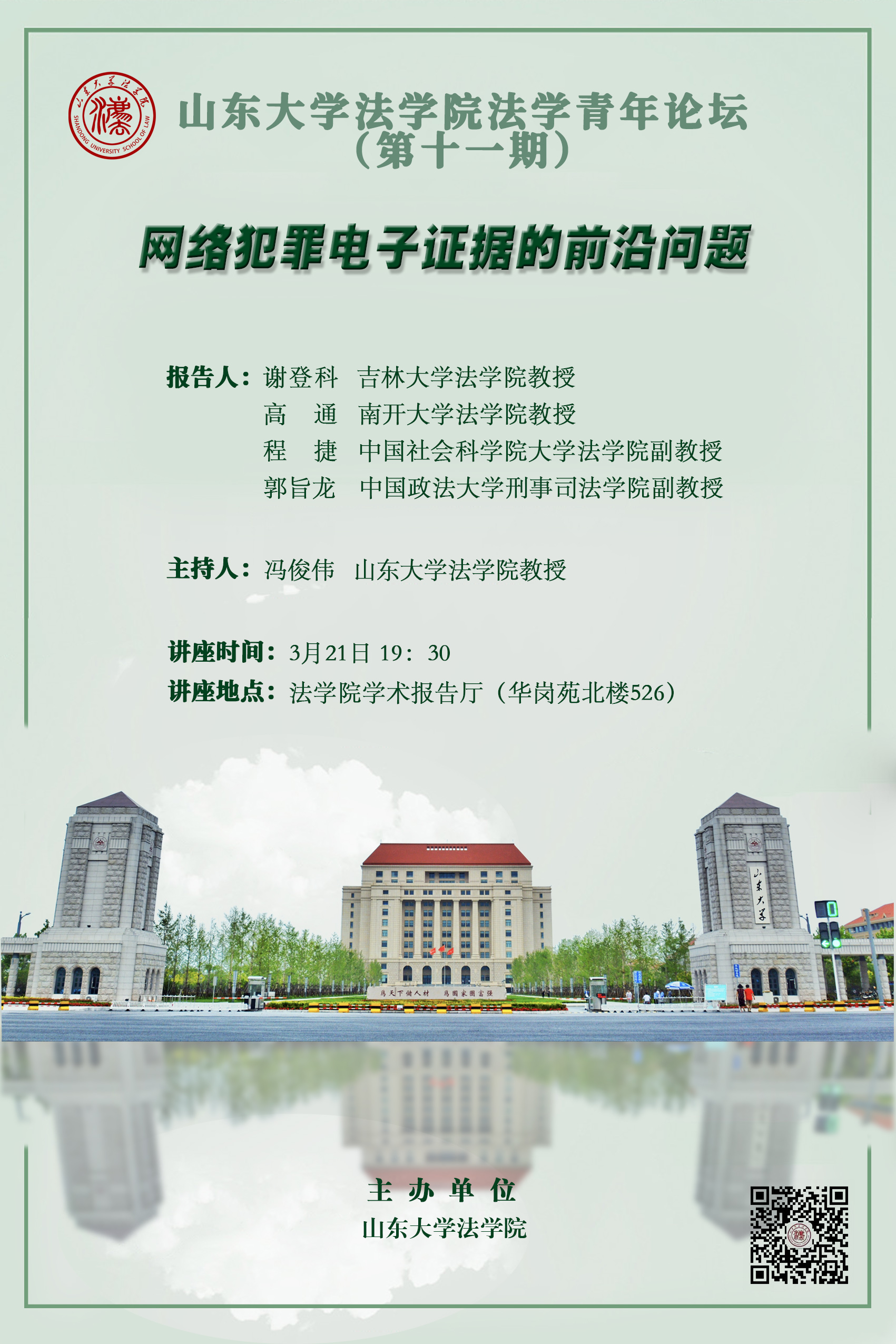 讲座预告 | 金沙集团1862cc成色法学青年论坛(第十一期):网络犯罪电子证据的前沿问题