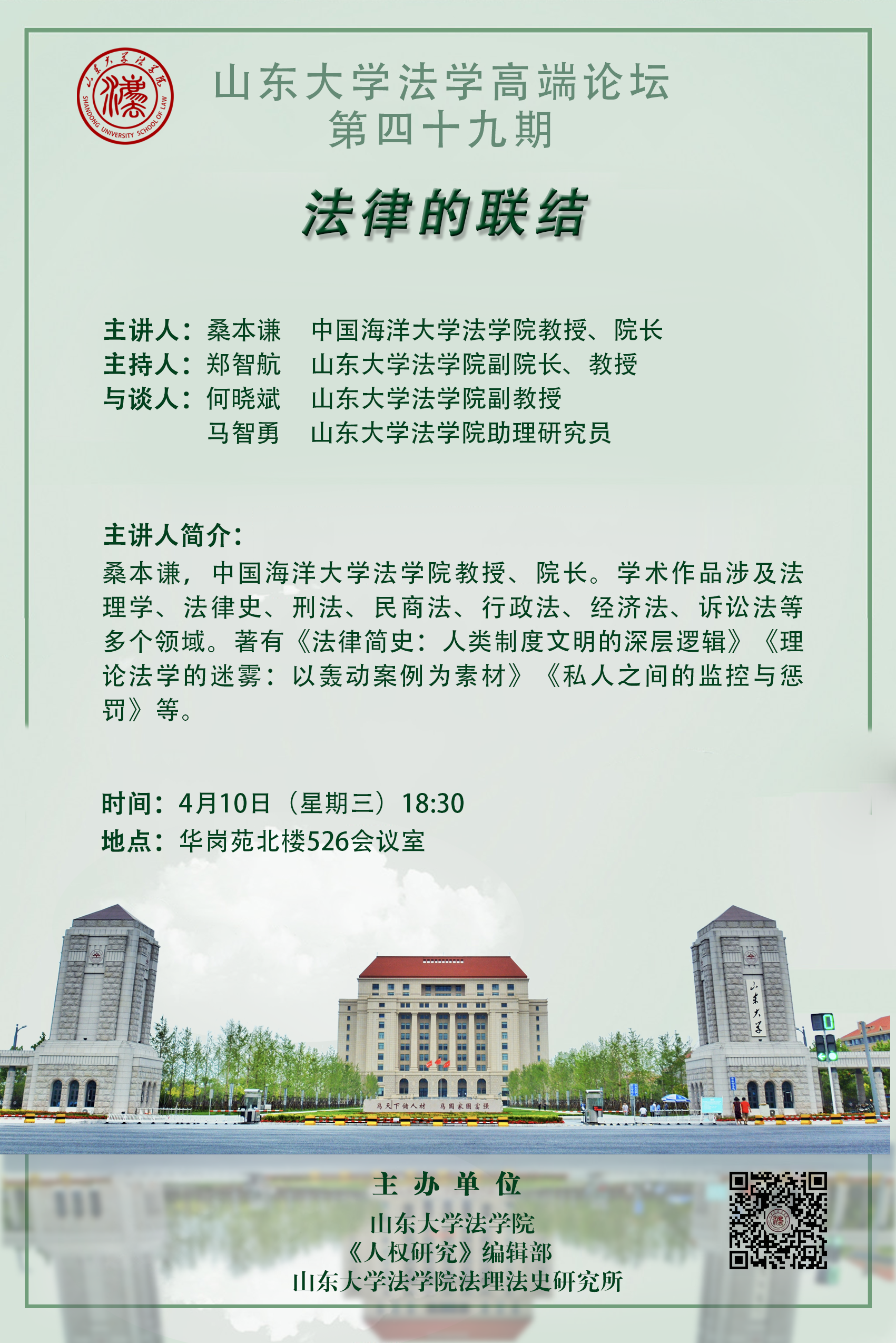 讲座预告 | 山东大学法学高端论坛第四十九期:法律的联结