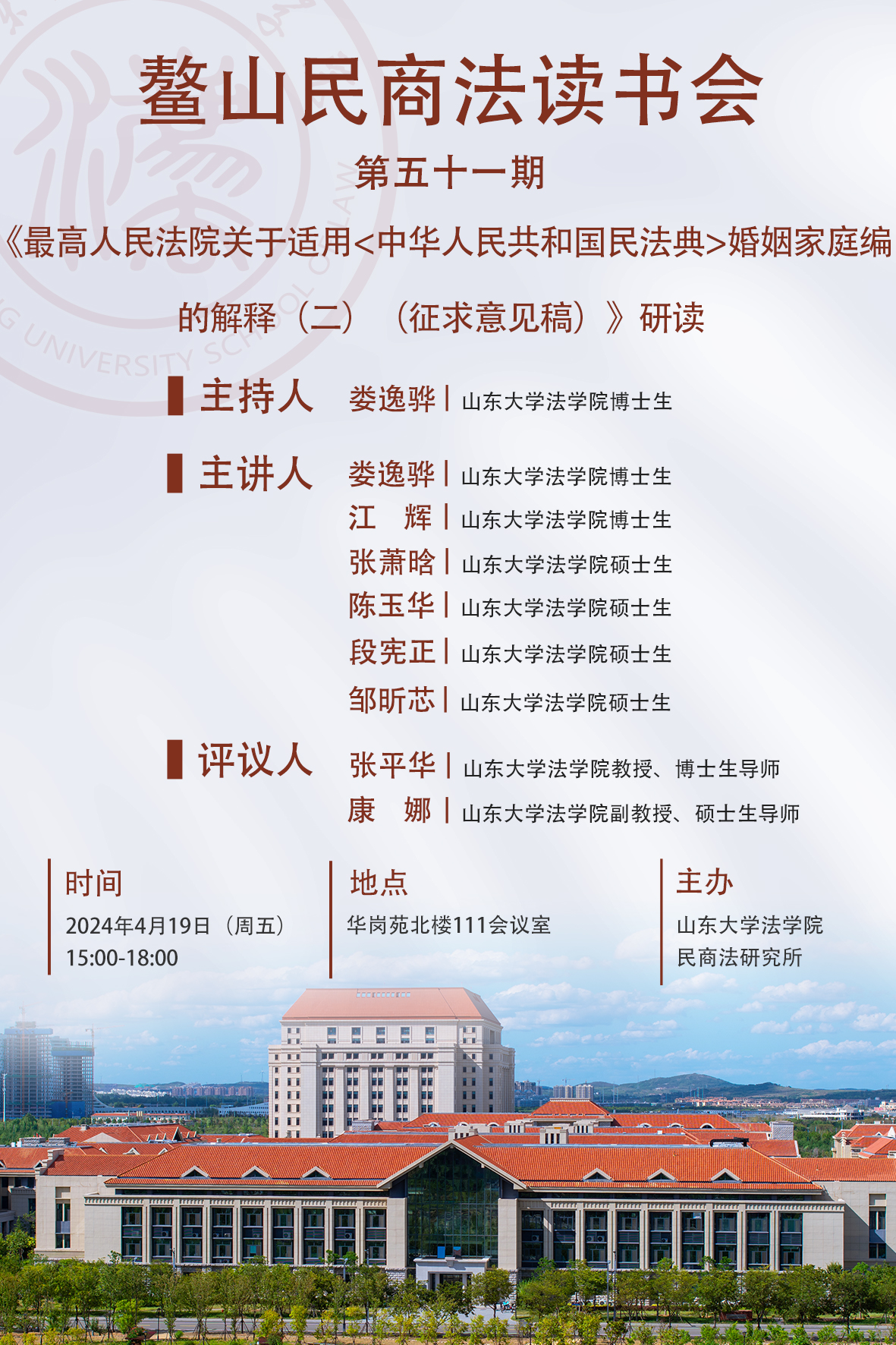 读书会预告 | 鳌山民商法读书会第五十一期:《最高人民法院关于适用<中华人民共和国民法典>婚姻家庭编的解释(二)(征求意见稿)》