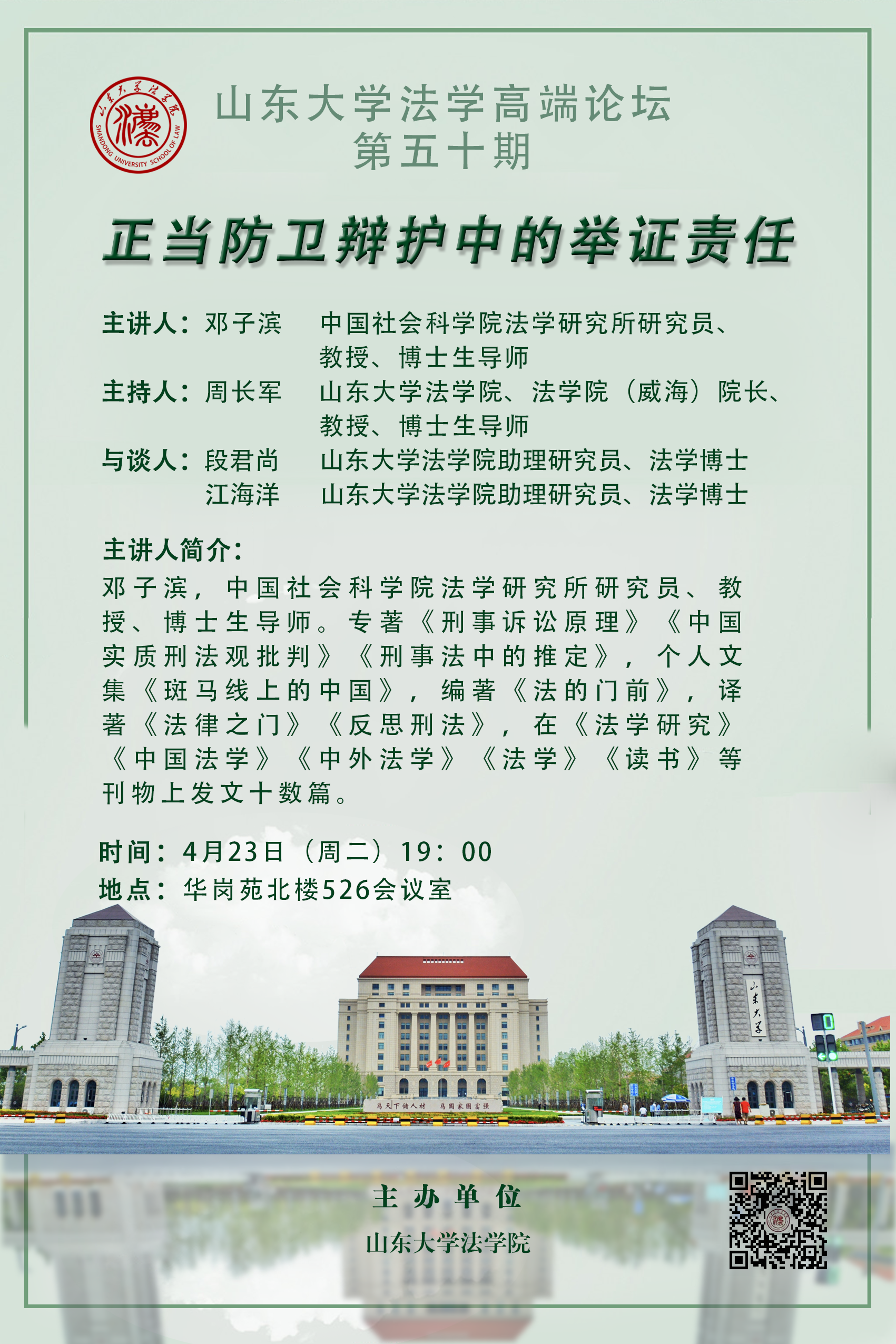 讲座预告 | 山东大学法学高端论坛第五十期:正当防卫辩护中的举证责任