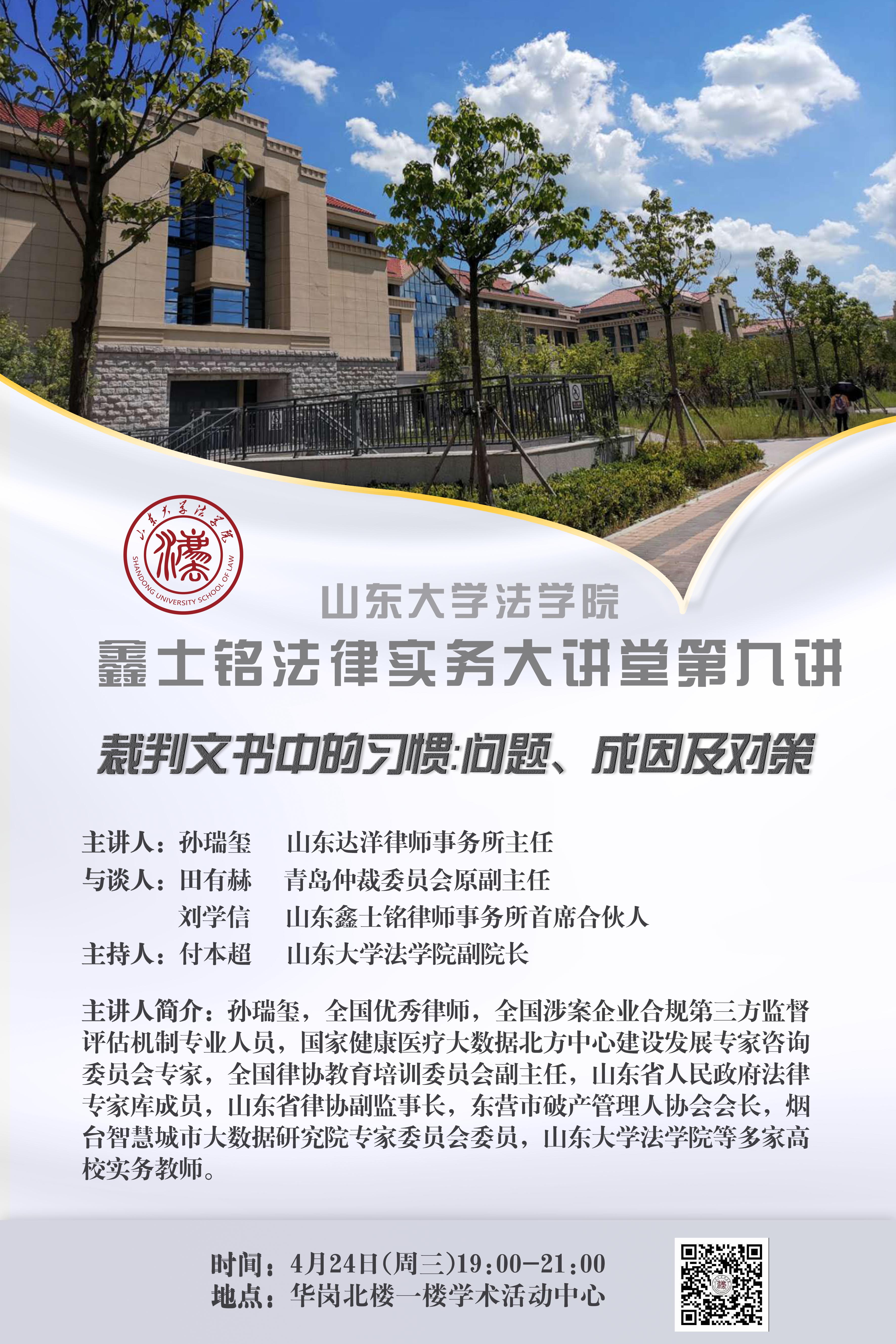讲座预告 | 金沙集团1862cc成色鑫士铭法律实务大讲堂第九讲——裁判文书中的习惯:问题、成因及对策
