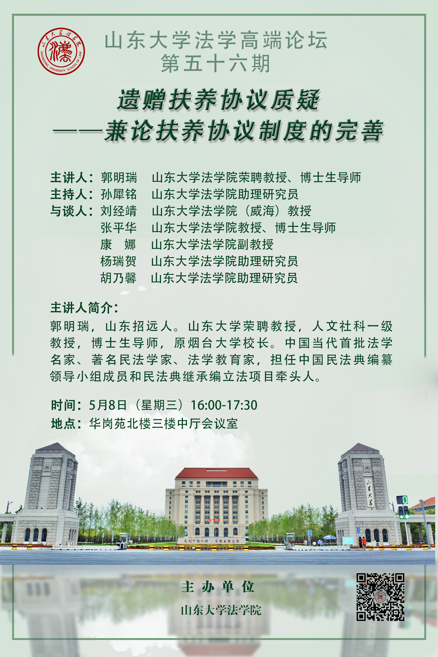 讲座预告 | 山东大学法学高端论坛第五十六期:遗赠扶养协议质疑——兼论扶养协议制度的完善