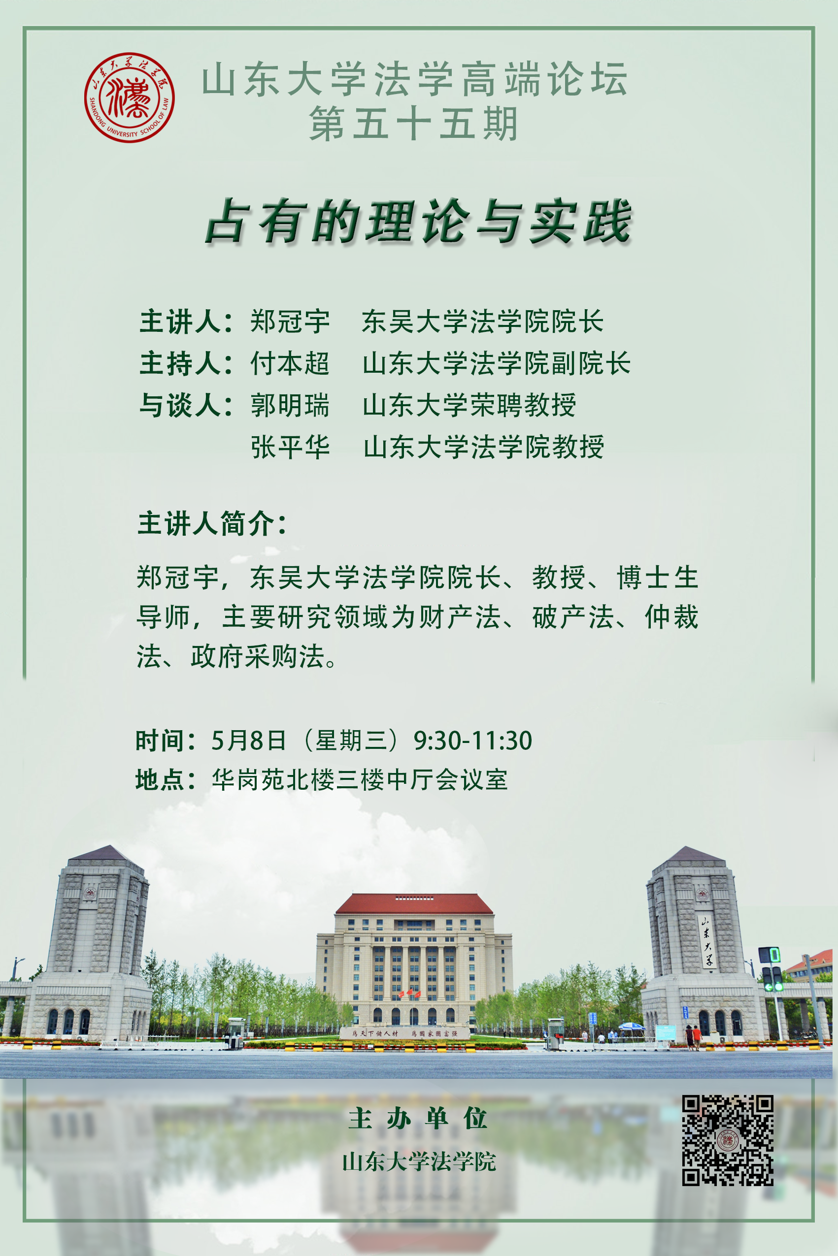 讲座预告 | 山东大学法学高端论坛第五十五期:占有的理论与实践