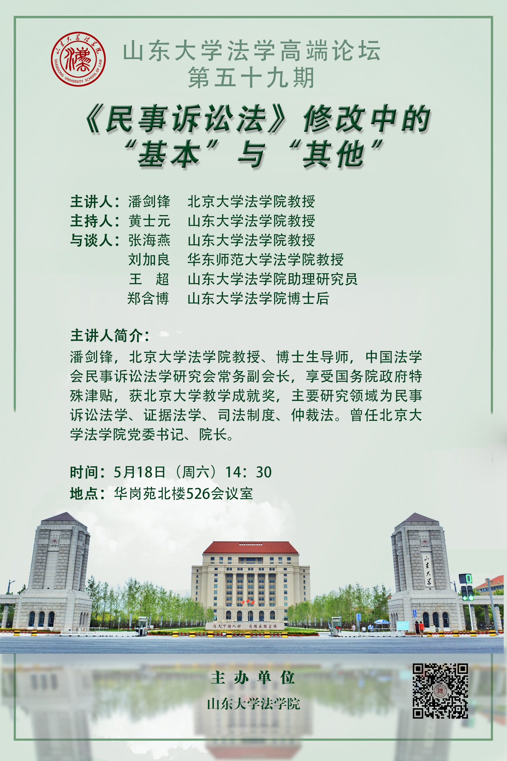 讲座预告 | 山东大学法学高端论坛第五十九期:《民事诉讼法》修改中的“基本”与“其他”