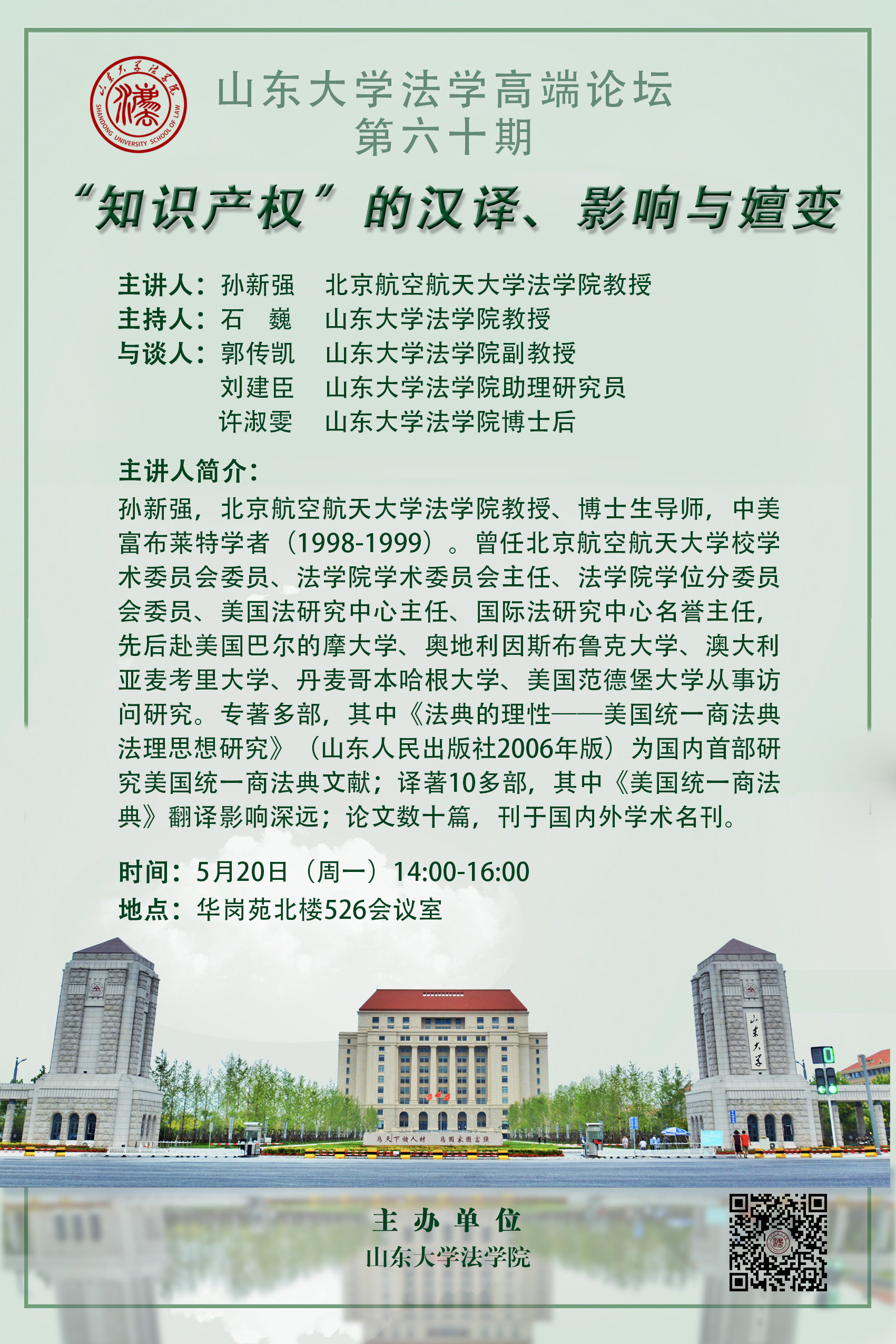 讲座预告 | 山东大学法学高端论坛第六十期:“知识产权”的汉译、影响与嬗变