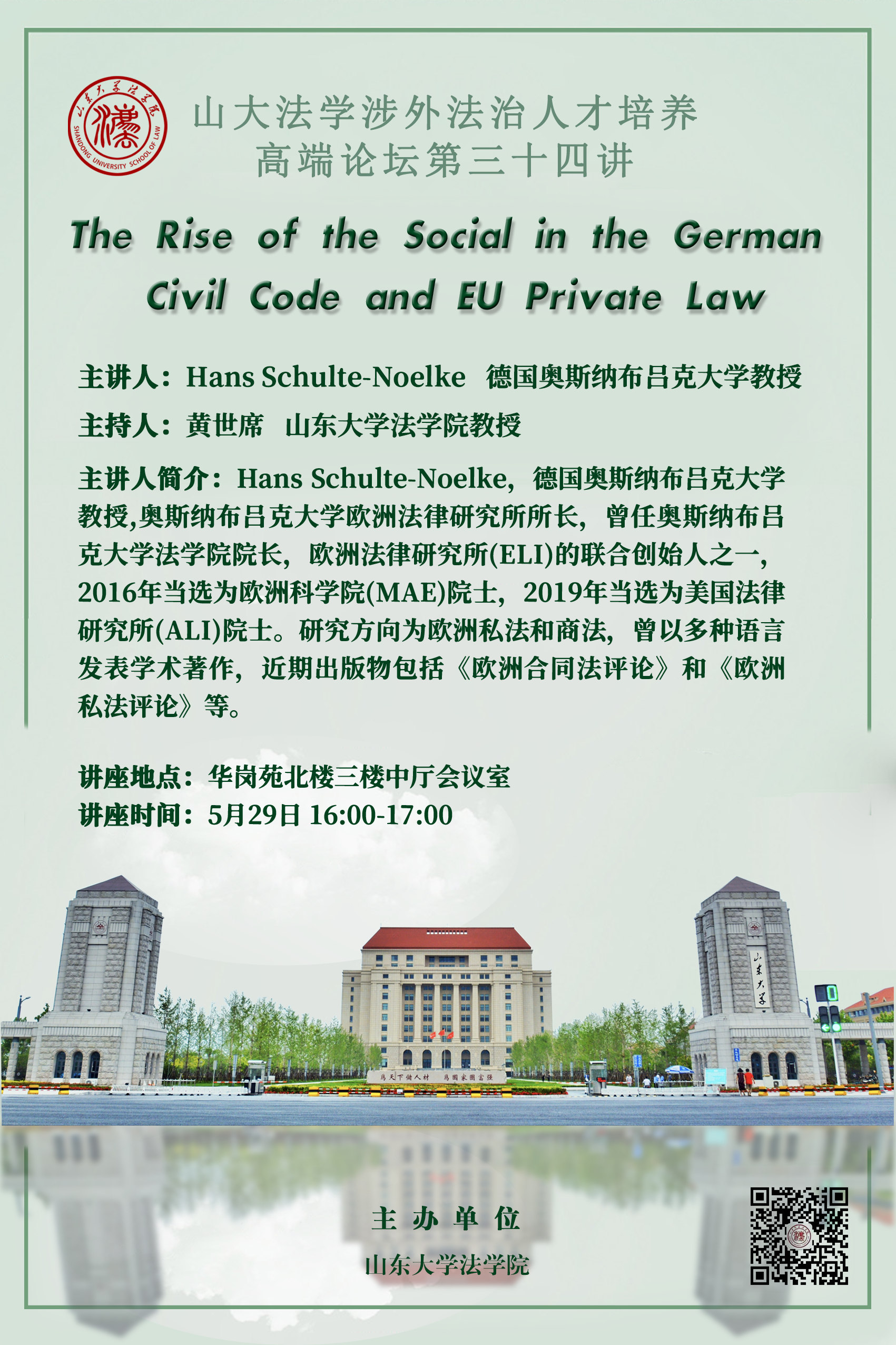 讲座预告 | 山大法学涉外法治人才培养高端论坛第三十四讲:The Rise of the Social in the German Civil Code and EU Private Law