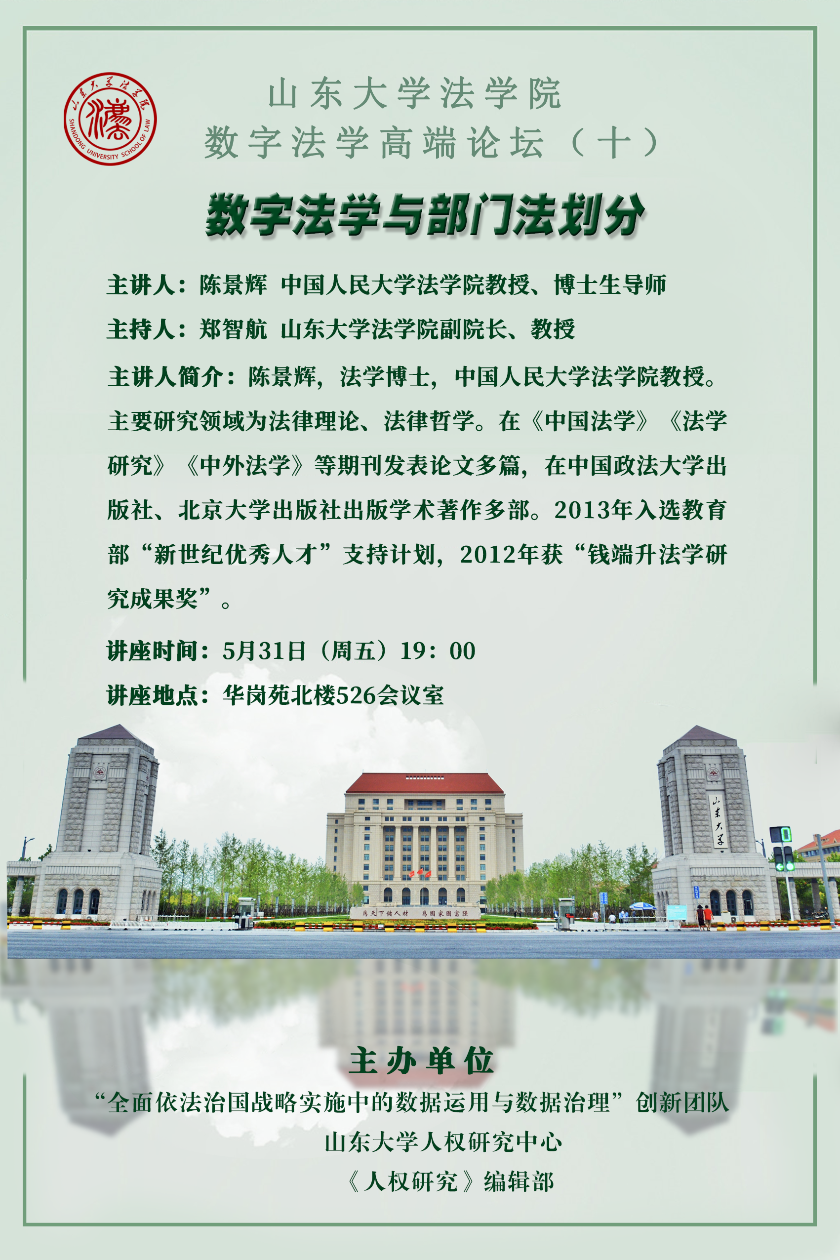 讲座预告 | 金沙集团1862cc成色数字法学高端论坛(十):数字法学与部门法划分
