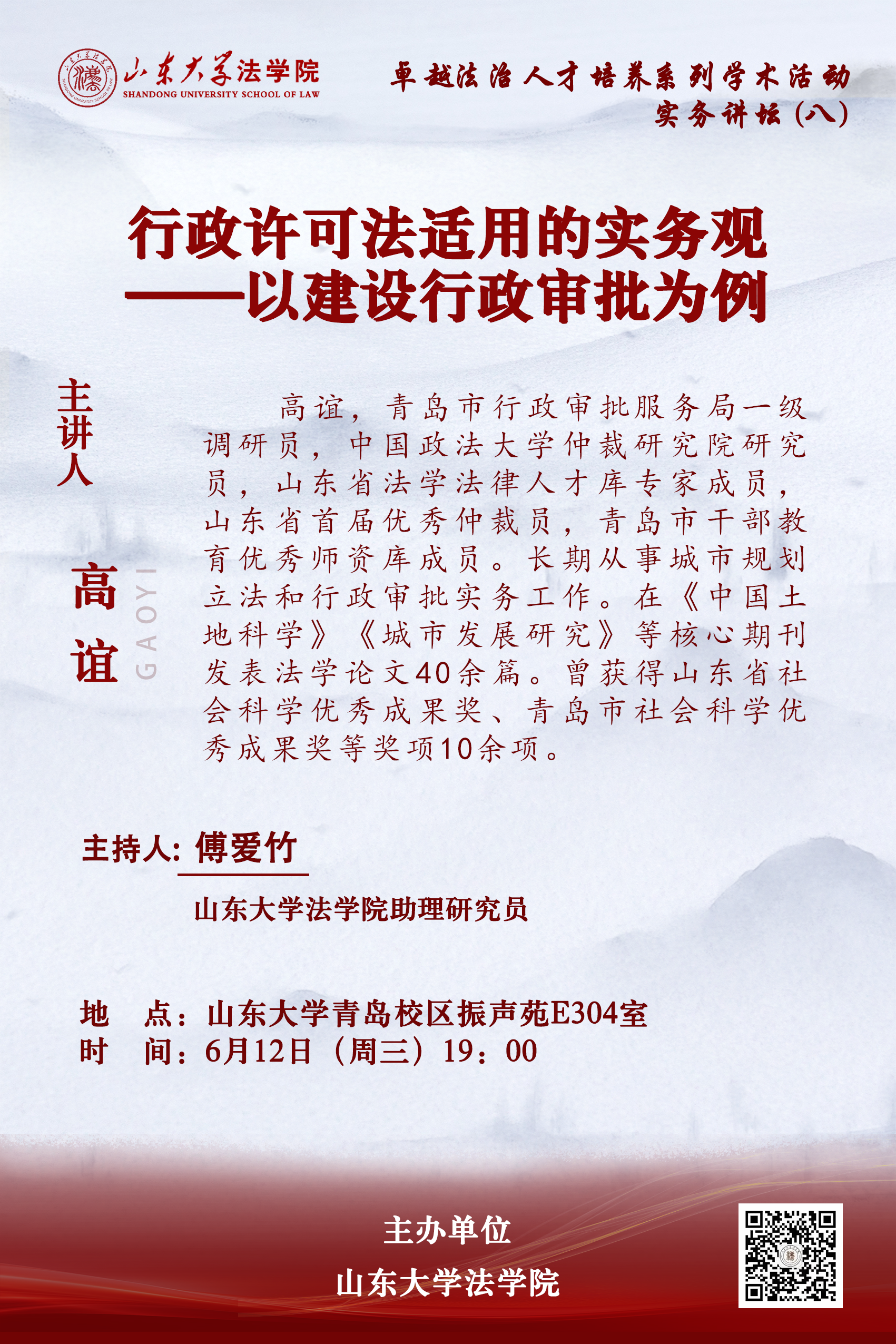 讲座预告 | 卓越法治人才培养系列学术活动实务讲坛(八):行政许可法适用的实务观——以建设行政审批为例