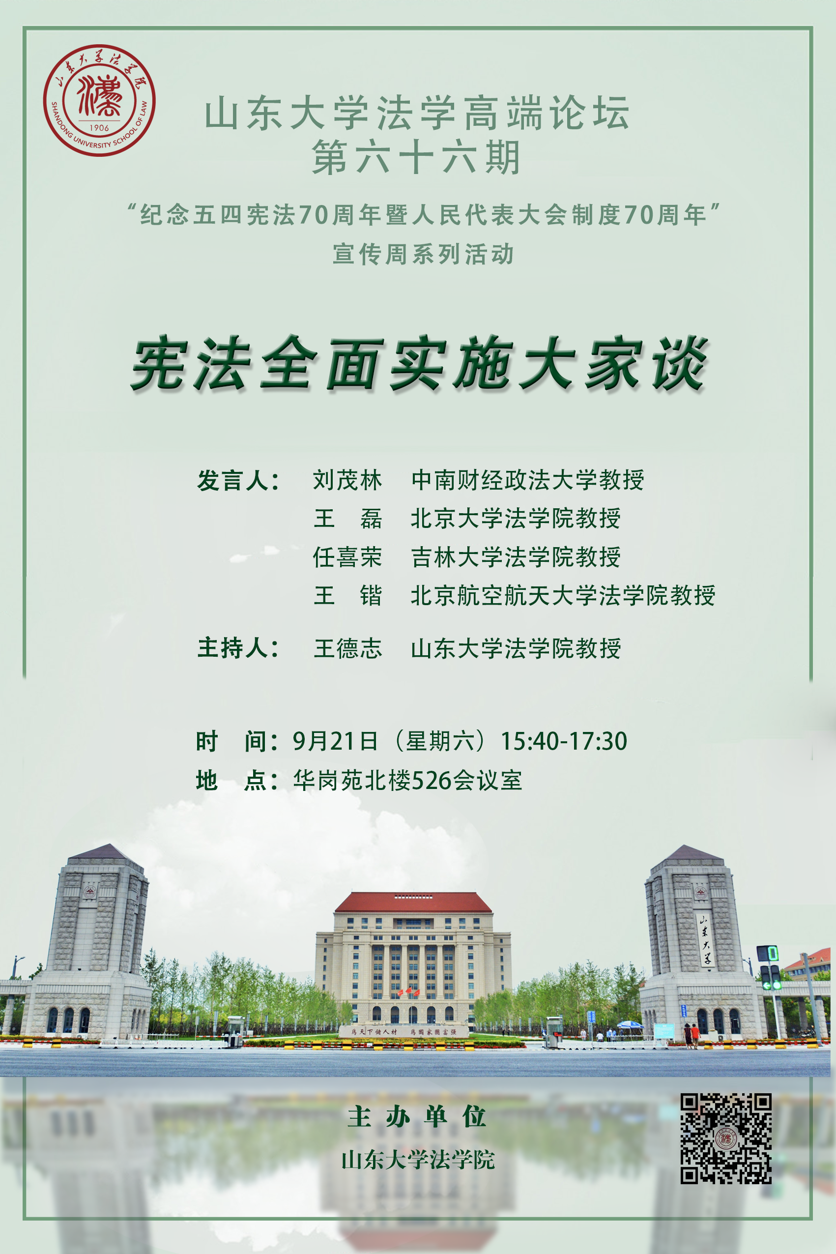 讲座预告 | 山东大学法学高端论坛第六十六期:宪法全面实施大家谈