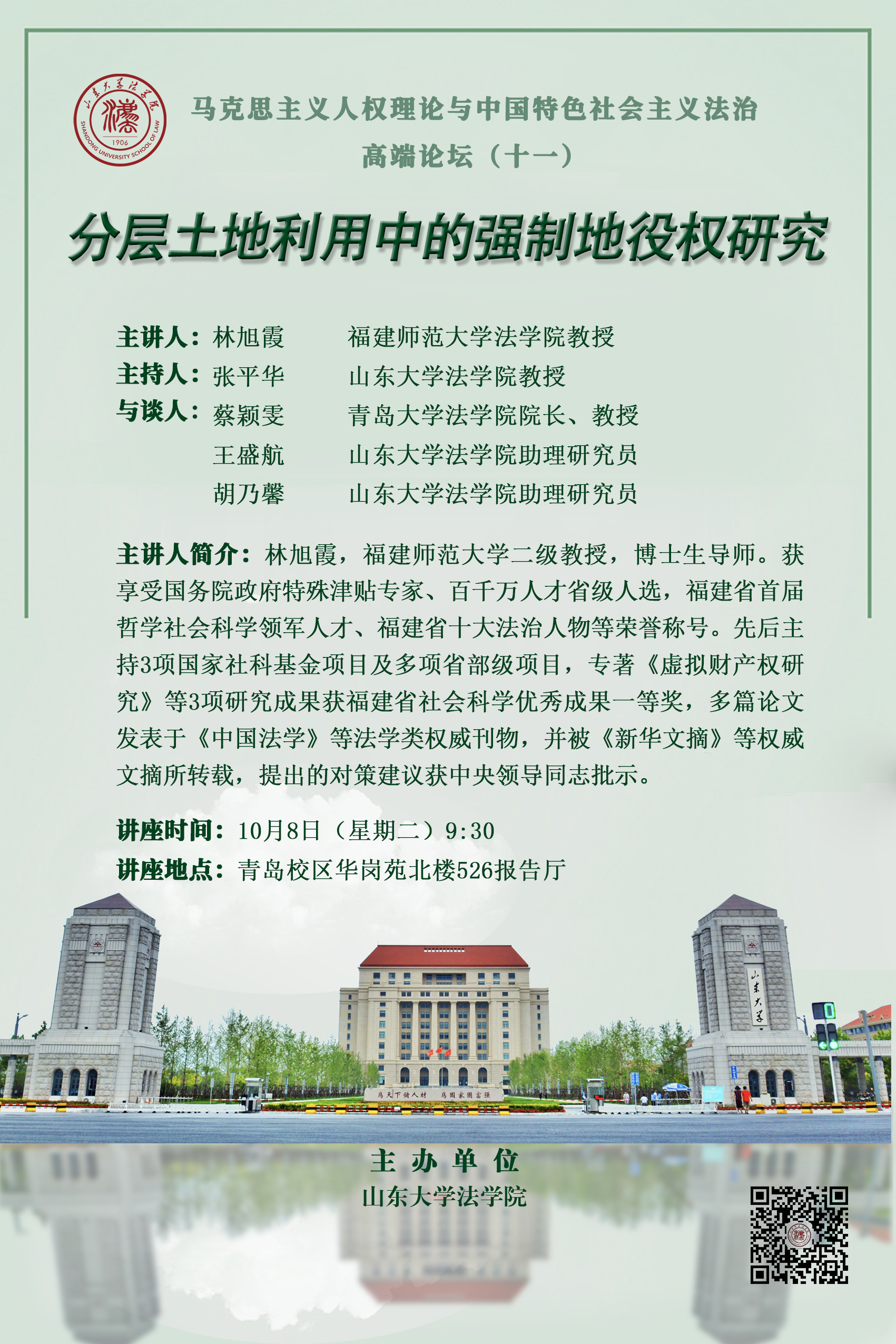 讲座预告 | 马克思主义人权理论与中国特色社会主义法治高端论坛(十一):分层土地利用中的强制地役权研究