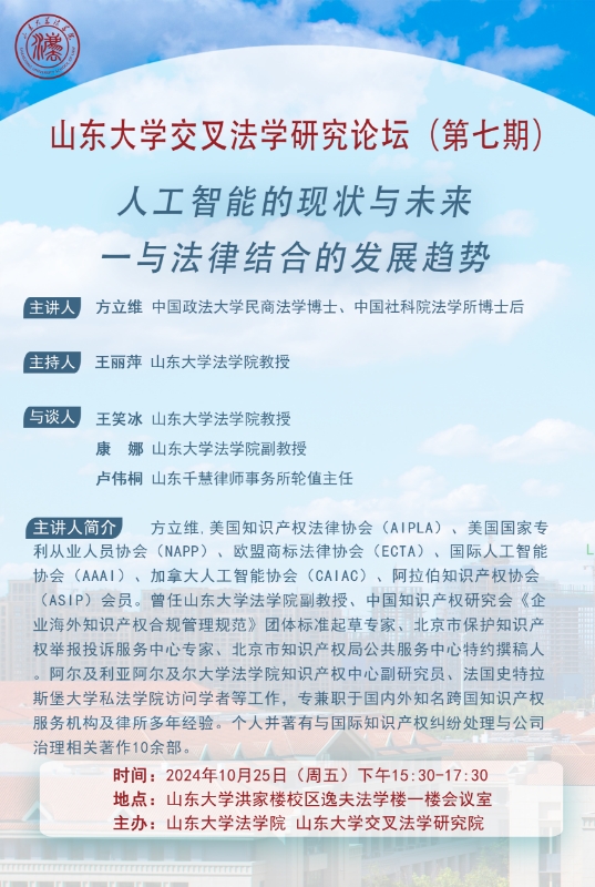 讲座预告|山东大学交叉法学研究论坛(第七期):人工智能的现状与未来——与法律结合的发展趋势