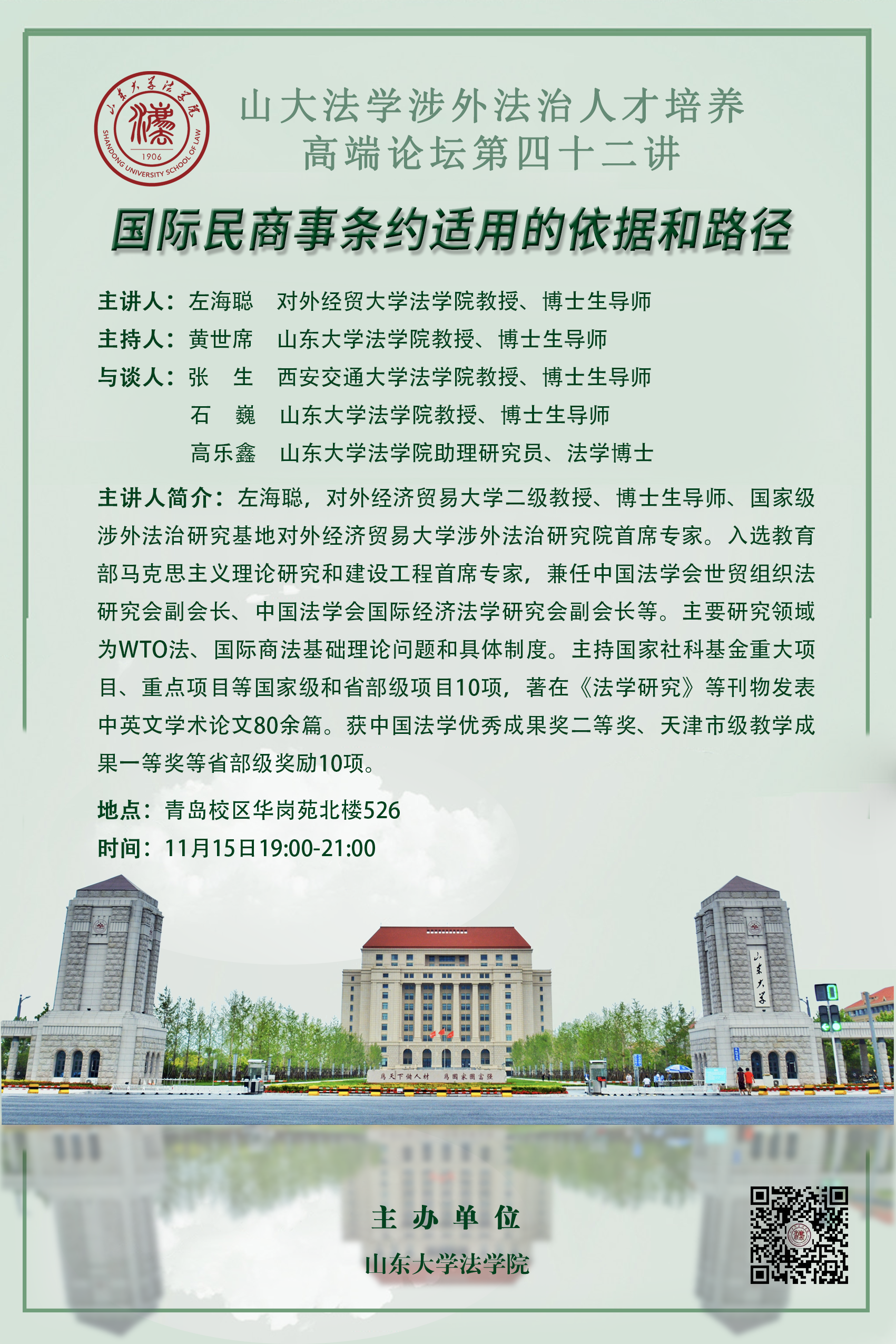 讲座预告 | 山东大学涉外法治人才培养高端论坛第四十二讲:国际民商事条约适用的依据和路径