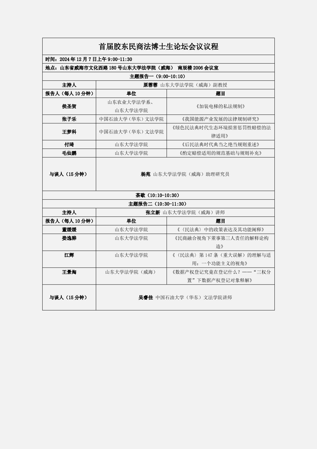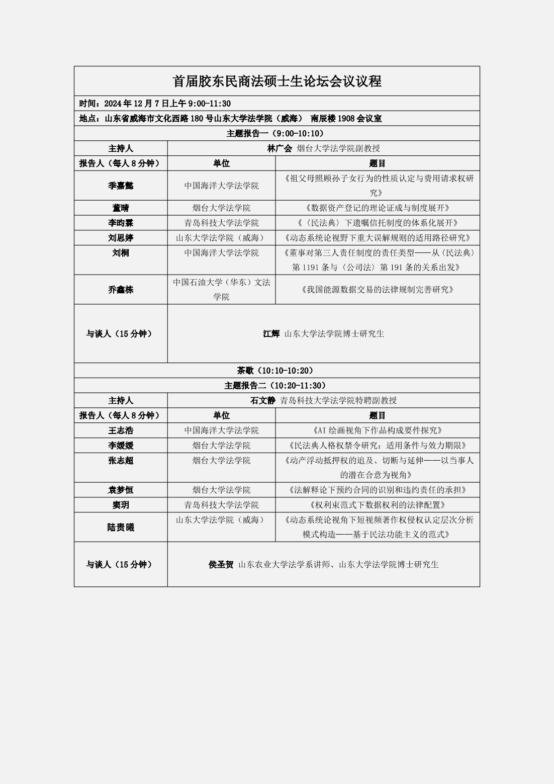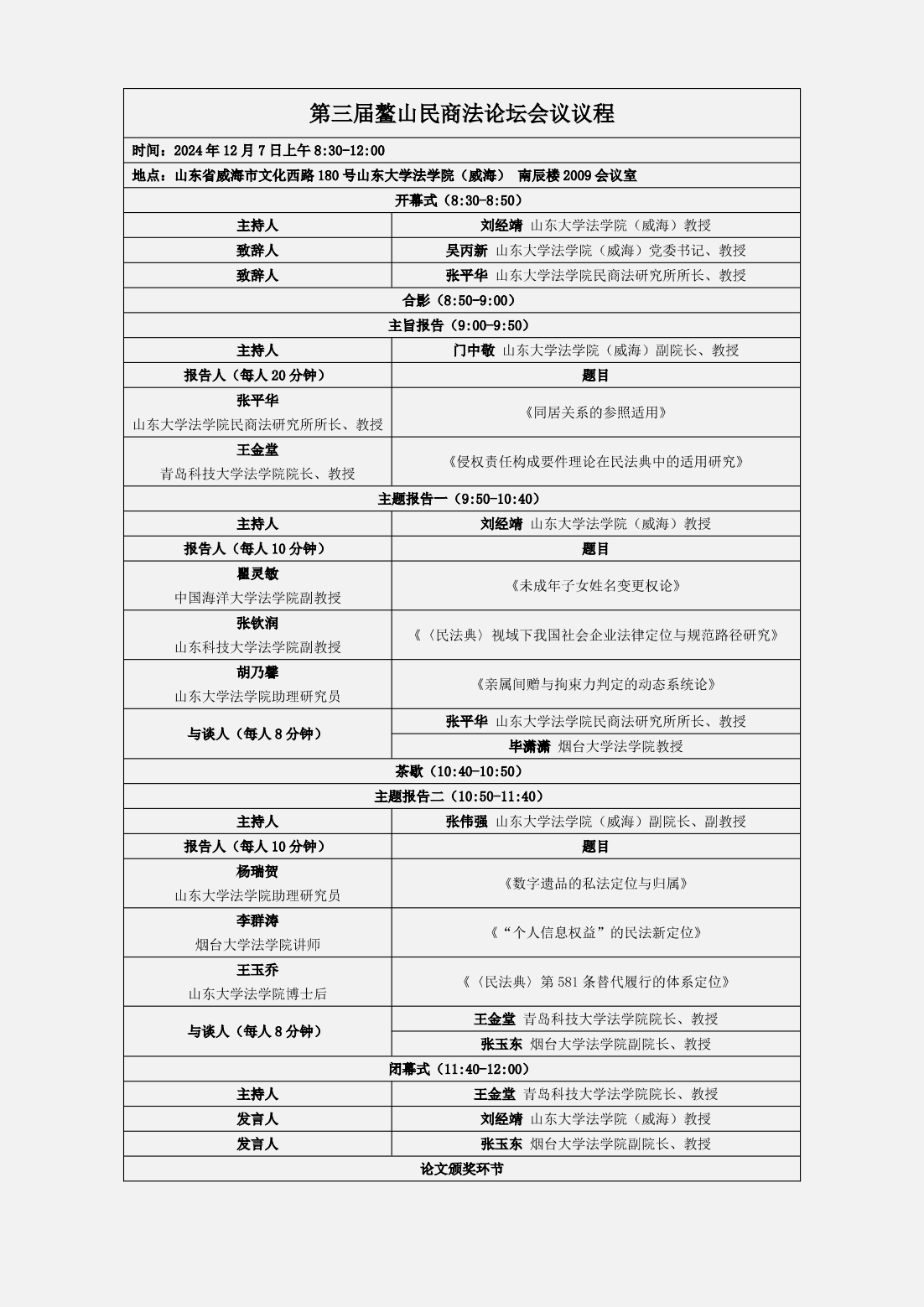 会议议程 | 第三届鳌山民商法论坛暨首届胶东民商法研究生论坛