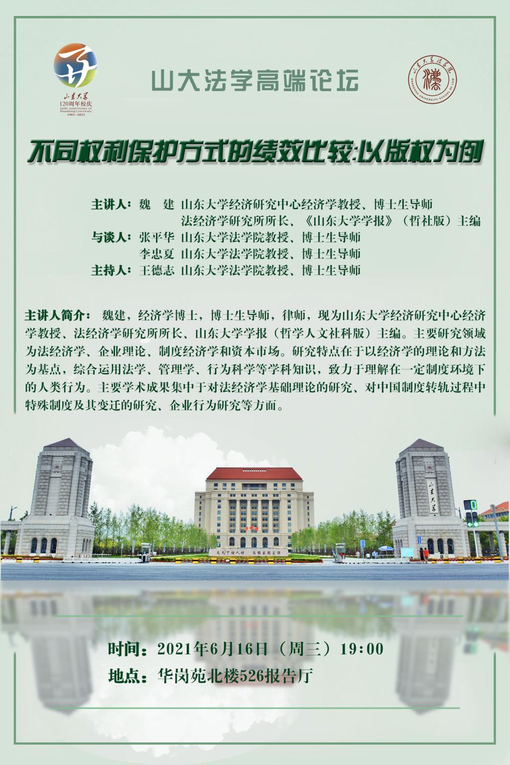 山大法学高端论坛:不同权利保护方式的绩效比较:以版权为例