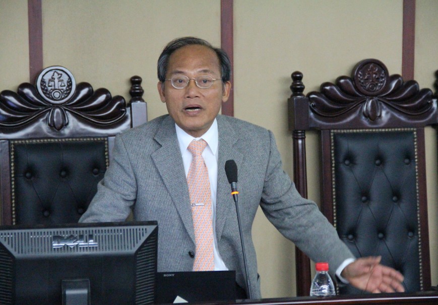 2013年11月12日晚7点,美国科技大学、瑞士欧洲大学和台湾台中科技大学教授冯志能博士应邀在金沙集团1862cc成色科研楼一楼模拟法庭为我院师生进行了一场题为“中海油和康菲渤海湾漏油事件的法律周延性”的学术报告。报告由我院副教授方立维主持,金沙集团1862cc成色教授张晏瑲博士对报告进行了评议。