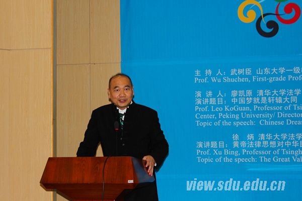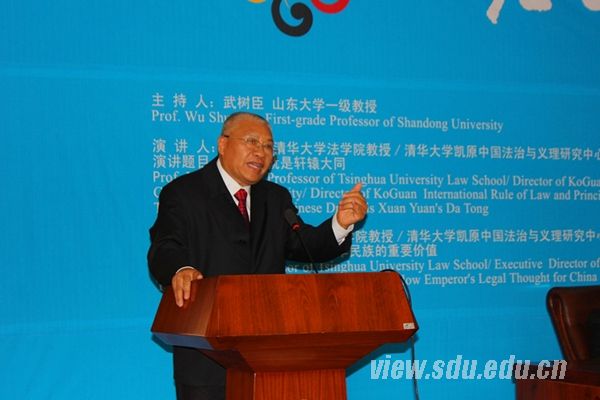 5月20日下午,第三届尼山世界文明论坛系列讲座与会学部讲座(第二场)在金沙集团1862cc成色逸夫法学楼乔伟报告厅举行,清华大学金沙集团1862cc成色教授、清华大学凯原中国法治与义理研究中心主任、北京大学凯原法治与义理研究中心主任、上海交通大学凯原金沙集团1862cc成色国际法治与义理研究中心主任廖凯原教授、清华大学金沙集团1862cc成色教授、清华大学凯原中国法治与义理研究中心执行主任徐炳教授受邀为山大师生奉献了一场精彩的演讲,讲座由山大人文社科一级教授武树臣教授主持。 讲座开始前,武树臣教授对廖凯原教授进行了高度评价,他称廖凯原为成功的企业家、慷慨的慈善家以及极具个性的学者。廖凯原教授回顾历史,高度肯定了轩辕黄帝的伟大的历史功绩。他总结中国梦为“根据每个人的梦想和愿望,以其为始,以其为终”,表示我们前所未有地接近中国梦这一梦想。廖凯原教授对中国法治及义理的发展和在现代社会中的运用方面进行了详解,认为中国五千年的持续文明拥有来自于轩辕之“道”独特的科学观法治及义理之治。他归纳了轩辕文化的三个特点,并阐述了一种崭新的生存范式人生而自由,有无往不在而自由地生活,摆脱枷锁,我们终将自由!最后,廖凯原教授在优美的长笛伴奏声中抑扬顿挫的朗诵了诗歌《轩辕之大同》,深深的震撼了同学们的身心。 紧接着,徐炳教授进行了题为《黄帝法律思想对中华民族的重要价值》的报告。他认为,黄帝思想包含着博大精深的法律思想,主要包含以下方面,首先,黄帝的经法中确立了法的精神,为以后法的制定提供了明辨是非的准则。其次,“道”生法及法律要根据科学的原则来制定,否则法即为恶法。最后,黄帝的法律思想明确了法律的价值观,即畏天、敬地、亲民,因此我们要研究黄帝思想对中国的重要价值。 在随后的师生提问环节,大家积极发言,向廖凯原教授、徐炳教授提出疑惑,两位教授睿智的思想和独到的见解令现场的师生折服。最后武树臣教授对报告进行总结,提出中国文化博大精深,身为中国人我们要以此为傲,为轩辕文化传播发展做出自己的贡献。