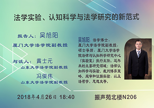 4.26金沙集团1862cc成色学术讲座:法学实验、认知科学与法学研究的新范式