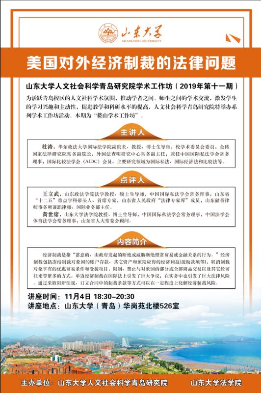 讲座预告:美国对外经济制裁的法律问题