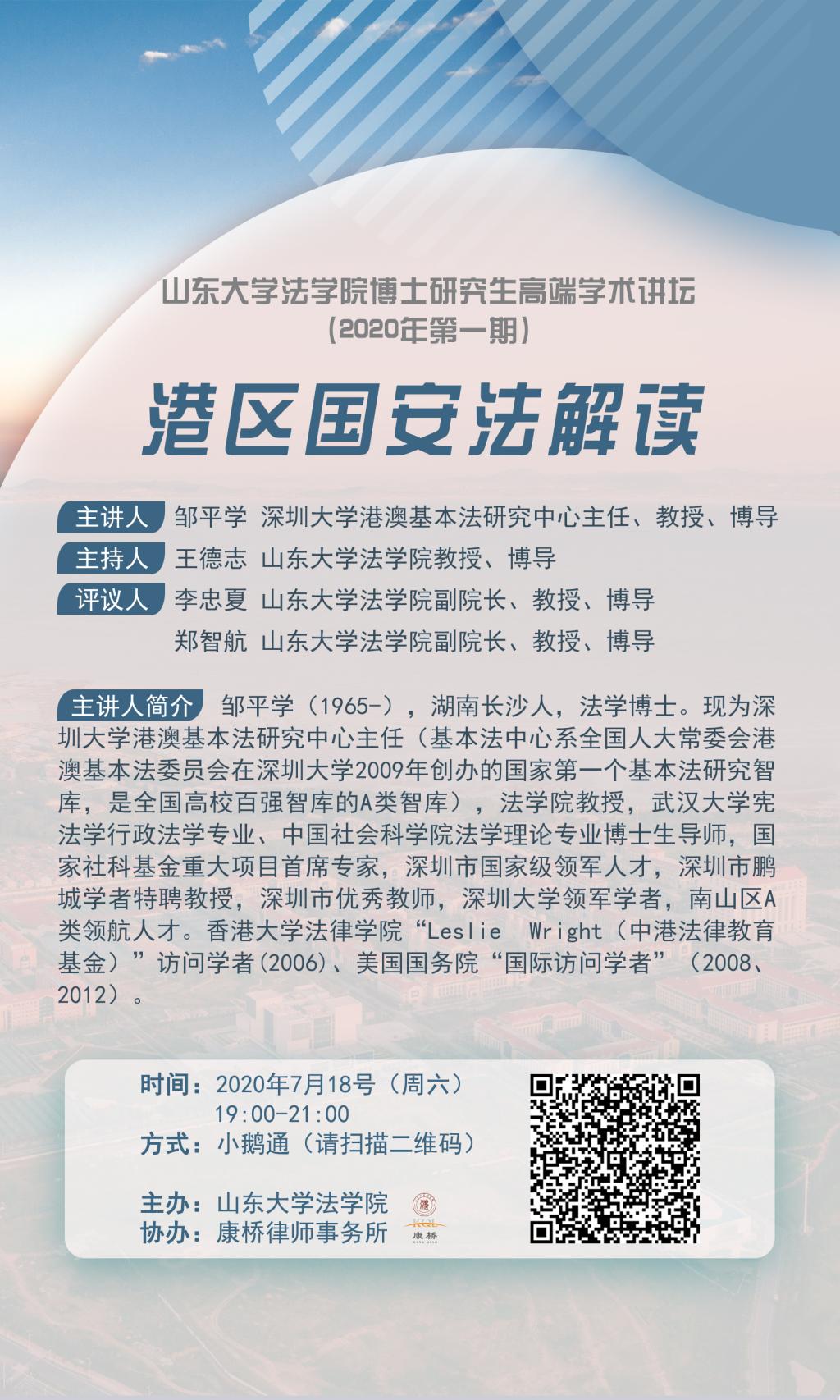 金沙集团1862cc成色博士研究生高端学术讲坛(2020年第一期):港区国安法解读